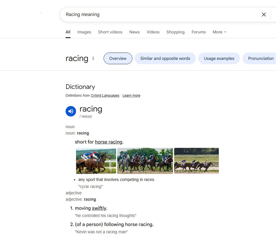 Da li ste znali da, ako pretražite na Googlu “Značenje trke” prva definicija iz Oxford Languages se odnosi na konjske trke?