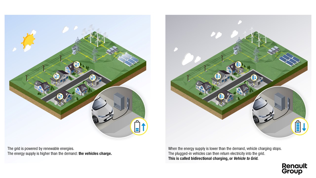 Šta bi bilo ako bi automobili postali osnova električne mreže? Upravo na ovoj pretpostavci počiva načelo povezivanja vozila i mreže, odnosno tehnologija dvosmernog punjenja koja će uskoro omogućiti Renaultovim vozilima da iskoriste deo električne energije sačuvane u njihovim baterijama i na taj način optimizuju rad električne mreže i osiguraju rešenja za prekide u isporuci obnovljive energije.