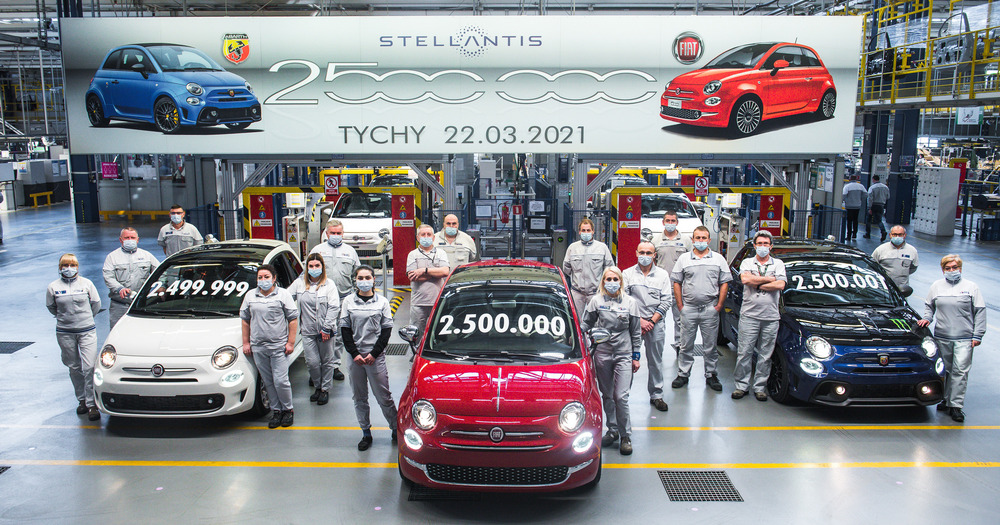 2,5 miliona primeraka modela 500 je proizvedeno u fabrici grupe Stellantis u poljskom gradu Tihi. Model kojim je postignut rekord, a koji je poručio kupac iz Francuske, je 500 hybrid opremljen sa „blagim“ hibridnim motorom sa 70 KS: reč je efikasnoj, kompaktnoj i laganoj pogonskoj jedinici, koja nudi zabavno i udobno iskustvo vožnje, koja smanjuje potrošnju i emisiju. Tehnologija „blagog“ hibrida – upotrebljena u modelima 500 i Panda tokom 2020. – bila je prvi korak u svet elektrifikacije za brend Fiat. To je vrlo brzo učinilo Fiat neprikosnovenim standardom u Evropi za elektrifikovanu urbanu mobilnost otvorivši time put ka hibridnim automobilima. U 2020. godini, modeli 500 i Panda Hybrid, zajedno sa Lancia Ypsilon, su isporučeni do ukupno 110,000 kupaca, pri čemu su 500 i Panda činili više od 50% ukupne prodaje. Od izlaska na tržište do danas, ova tri modela su prodata u ukupno 155,000 primeraka.