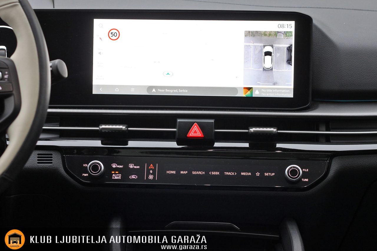 Ono što nas je posebno obradovalo je i povelik broj fizičkih komandi. U vremenu kad većina proizvođača gleda kako da dugmiće svede na minimum, Kia traži način da bude praktična. Imamo tastere koji su na dodir, ali izdvojeni i pomoću kojih se lako upravlja klimom i audio uređajem. Prečice su osmišljene da olakšaju i ubrzaju korišćenje. Isto kao i na Sorentu, imamo određene tastere za dvostruku upotrebu, u zavisnosti da li ste odabrali podešavanje klima ili audio uređaja.