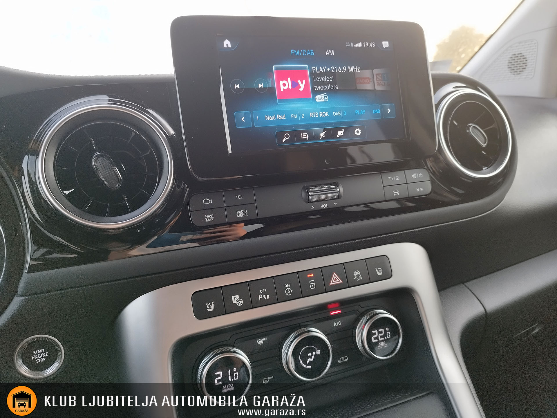 Čak i standardna oprema uključuje sledeće: MBUX infotejnment sistem sa 7-inčnim ekranom osetljivim na dodir i integracijom pametnog telefona. Utisak kvari znatno veće kućište ekrana, sa širokim ivicama u visoko sjajnoj crnoj boji. Veći ekran bez ivica bi svakako lepše izgledao i bio funckionalniji. No za dodatne funkcije tu je multifunkcionalni upravljač sa tasterima za kontrolu dodirom, a od ostale opreme navodimo klima uređaj, KEYLESS Start, instrument tablu sa displejom u boji od 5,5 inča, vozačevo sedište podesivo po visini, zatvoren pretinac, poklopac prtljažnika i džepovi na naslonima prednjih sedišta. Pored toga, tu je i LED unutrašnje osvetljenje.