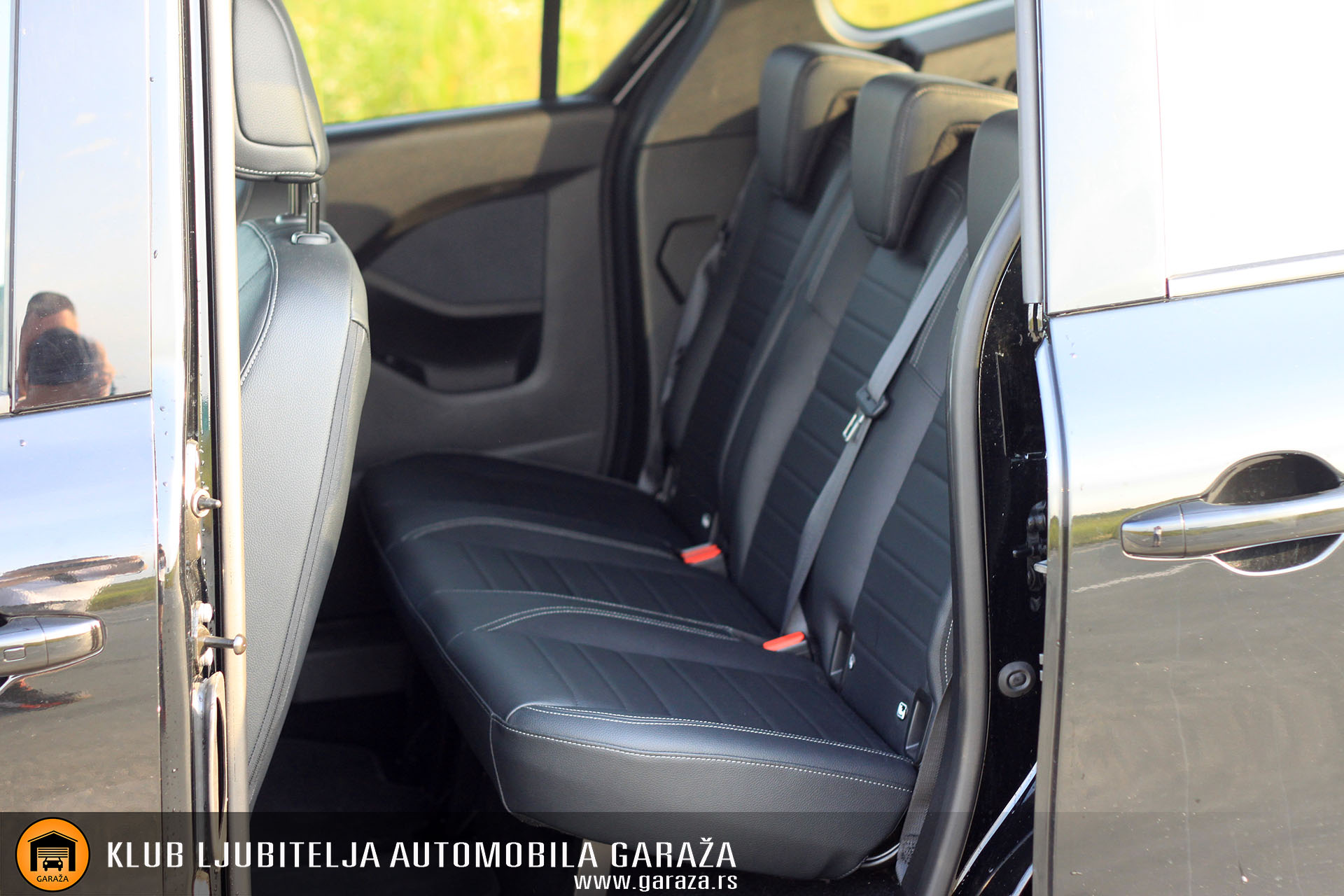 Putnicima pozadi, a posebno deci, klizna vrata omogućavaju da brzo i bezbedno uđu i izađu iz vozila u uskim ulicama i na parking mestima. Ukoliko su u vozilu manja djeca kojima je potrebna pomoć prilikom vezivanja u dečijem sedištu, veoma će te ceniti velike otvore vrata i visinu sedišta. I pored tri odvojena sedišta, srednje nije opremljeno isofix držačim i teško je izvodljivo smestiti tri dečija sedišta. Klupa zadnjih sedišta se standardno preklapa da bi se stvorio praktično ravan prostor za utovar sa podom prtljažnika. Ovo omogućava da se unutrašnjost vozila po potrebi prilagodi specifičnim zahtevima korisnika.