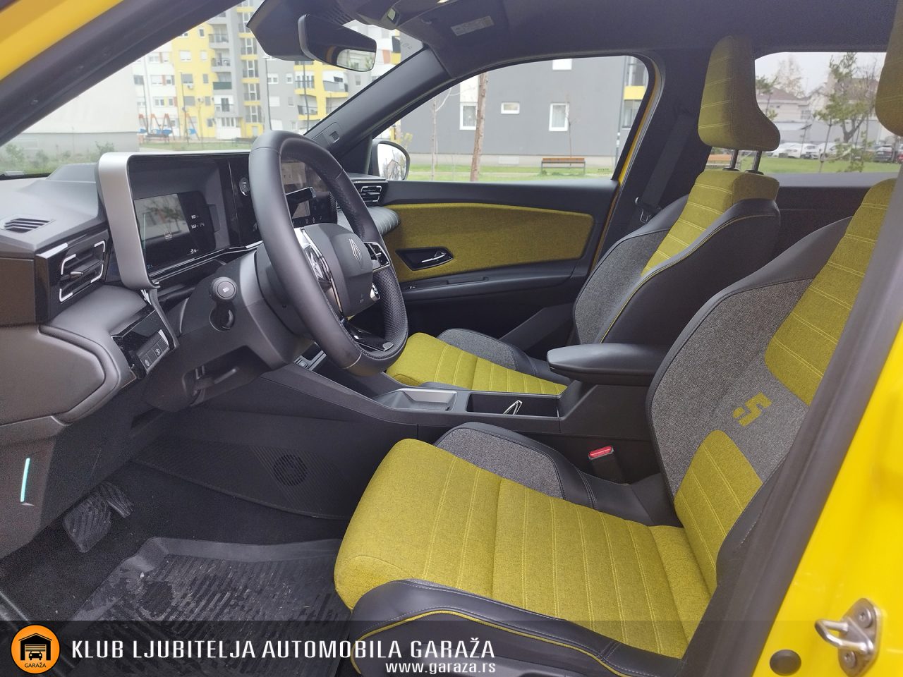 Po ulasku u enterijer dočekuje nas kabina koja je prava mala izložba francuskog dizajna i pažnje prema detaljima. U oči upadaju žuto kremasta sedišta napravljena od recikliranih materijala sa žutim šavovima koji savršeno podudaraju sa bojom eksterijera. Prednja sedišta dolaze sa grejanjem, što je izuzetno praktično u zimskim uslovima, uz podešavanje lumbalne podrške. Upravljač je takođe grejan, što značajno doprinosi komforu u hladnim danima. Broj 5 daje poseban pečat karakteru vozila, dok sedišta u obliku slova H podsećaju na uređenje čuvenog Renaulta 5 Turbo. Ono što je  takođe zanimljivo je i činjenica da se najmanje 88,6 % Renaulta 5 E-Tech electric može se reciklirati. U vozilu nisu upotrebljeni kožni materijali, a presvlake sedišta izrađene su od 100 % recikliranog materijala. Ipak, Renault 5 nimalo ne deluje jeftino, čak naprotiv.