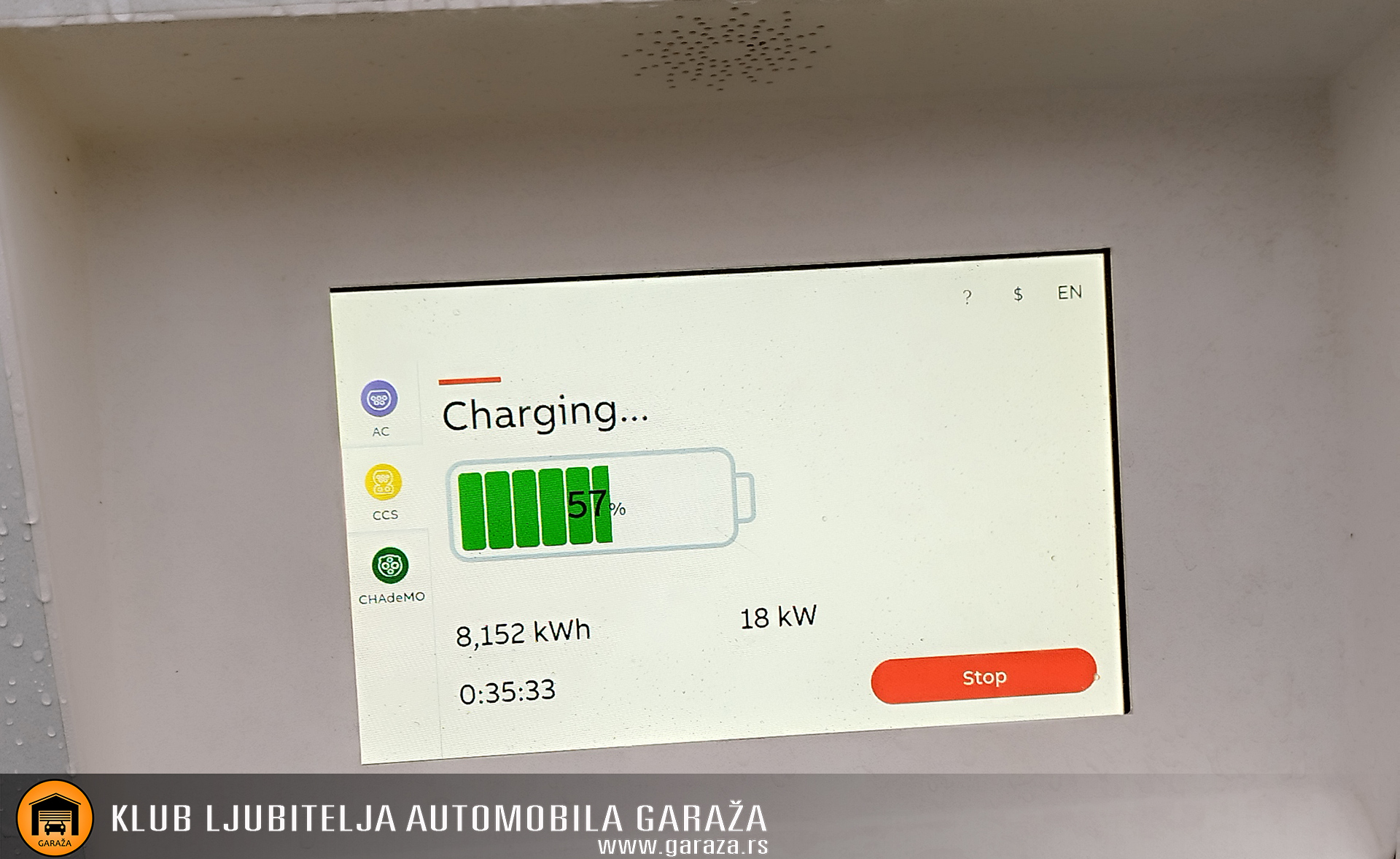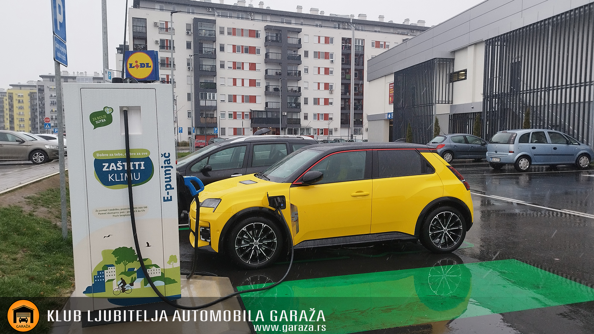 Tokom nedelju dana korišćenja „petice“ trebalo je povremeno dopuniti bateriju. Iskoristio sam mogućnost besplatnog korišćenja punjača na parking LIDL prodavnice u naselju Galenika, u Zemunu. Ovde je moguće dopuniti svoje električno vozilo, uz ograničenje od sat vremena korišćenja dnevno. Nakon sat vremena punjenje se automatski isključuje. Doduše, primetili smo da ista vozila dolaze više puta u toku dana tako da se, uz pauzu, verovatno može iskoristiti i više od sat vremena dnevno za punjenje.