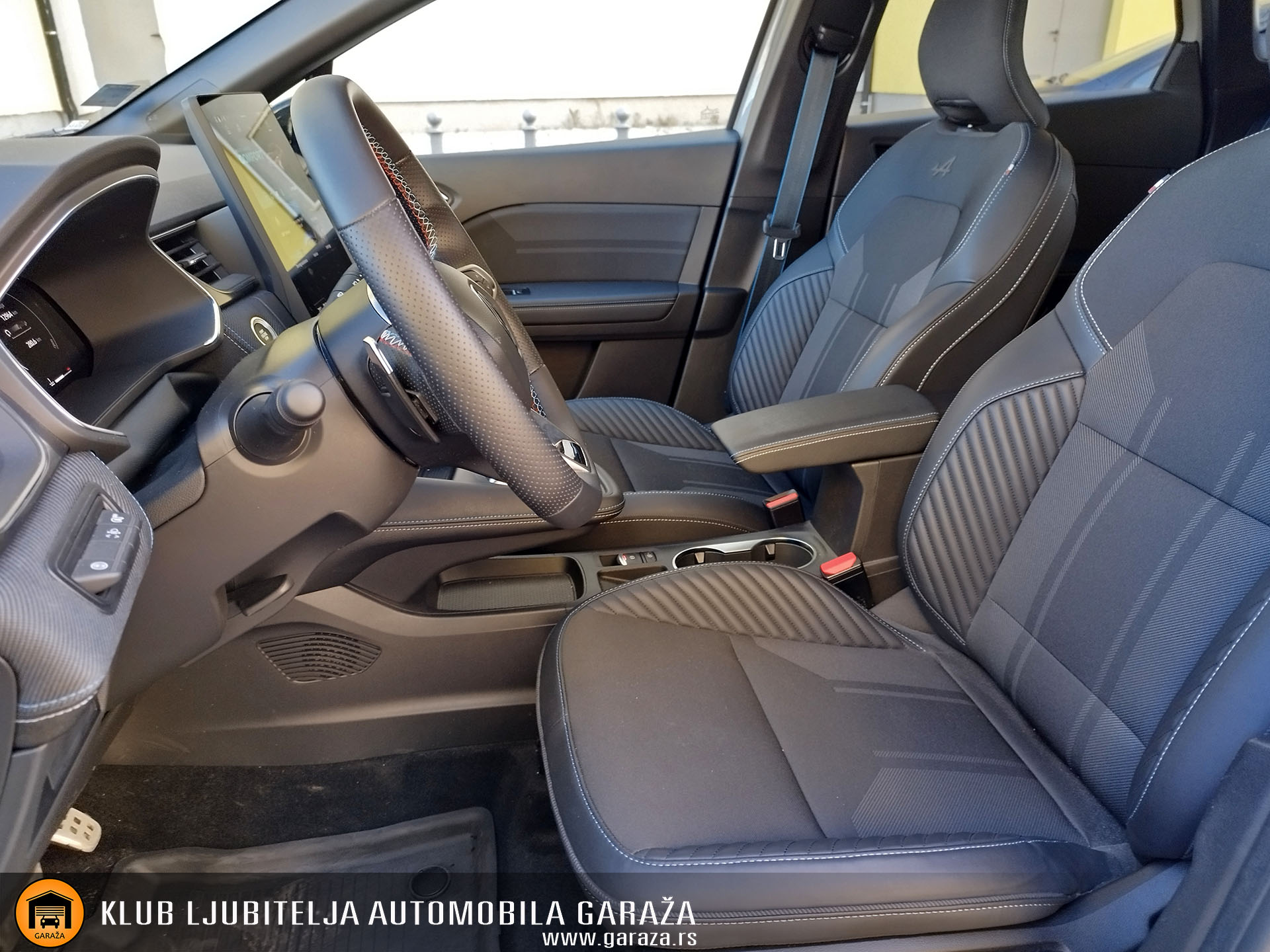 Redizajnirani Captur donosi moderniji i nešto ozbiljniji izgled. Prednji deo vozila krasi nova maska sa novim Renault logotipom, a tu su i LED dnevna svetla inspirisana dijamantskim oblikom brenda, koja su sada zaštitni znak aktuelne game. Testirani primerak dolazi u Esprit Alpine paketu opreme, koji delom naglašava sportski karakter vozila sa 19-inčnim aluminijumskim felnama, mat sivim detaljima na branicima, dok su gornji elementi u crnoj boji visokog sjaja.