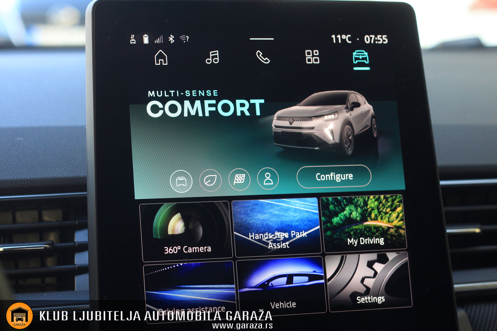 Captur dolazi sa bogatim paketom poslednje generacije tehnologija, uključujući i poznati Multi-Sense sistem za personalizaciju režima vožnje, adaptivni tempomat sa funkcijom Start&Go i dodatnih 28 naprednih sistema asistencija. Ono što nam se zaista svidelo je što su na dohvat ruke, sa leve strane upravljača, postavljeni brzi tasteri. Na ovaj način može se brzo i lako isključiti start-stop sisteme ili ukljkučiti personalizovani režim, prethodno odabran u okviru MultiSense-a. Takođe se jednim klikom mogu i uključiti svi sistemi asistencije.