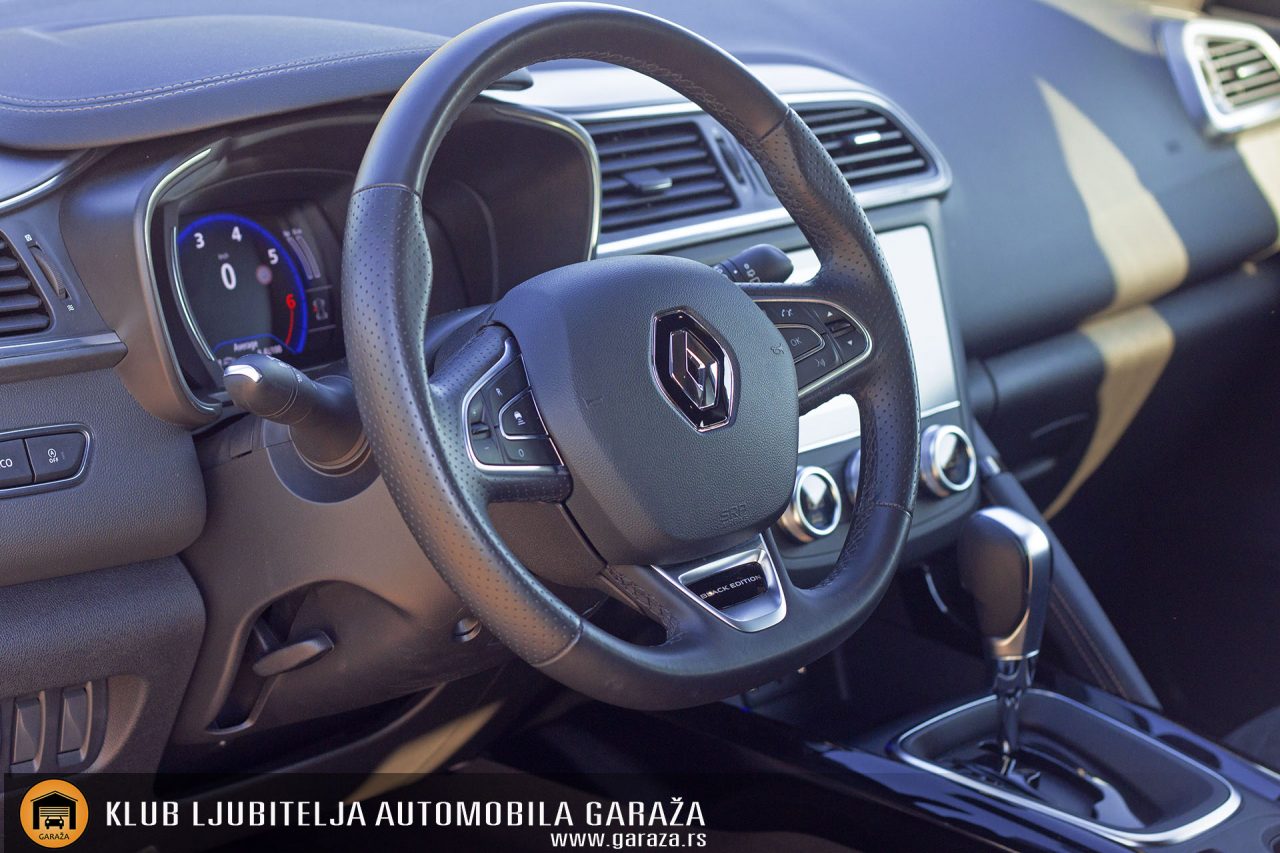 Sa mesta vozača sve je pregledno i funkcionalno, mada imamo i poneku zamerku. Prekidač tempomata je smešten između vozača i suvozača, na šta smo već navikli kod Renaulta, ali krajnje je vreme da ga smeste na upravljač. Pored mnoštva standardne bezbednosne opreme, koju poseduje u najvišem paketu, Kadjar je opremljen i sa brojnim asistencijama. Kompleksan sistem objedinjuje dve kamere, čak dvanaest senzora i radar. Lako manevrisanje u gradu i prkiranje omogućava Easy Park Assist pomoću kojeg Kadjar sam obavlja potrebne manevre.