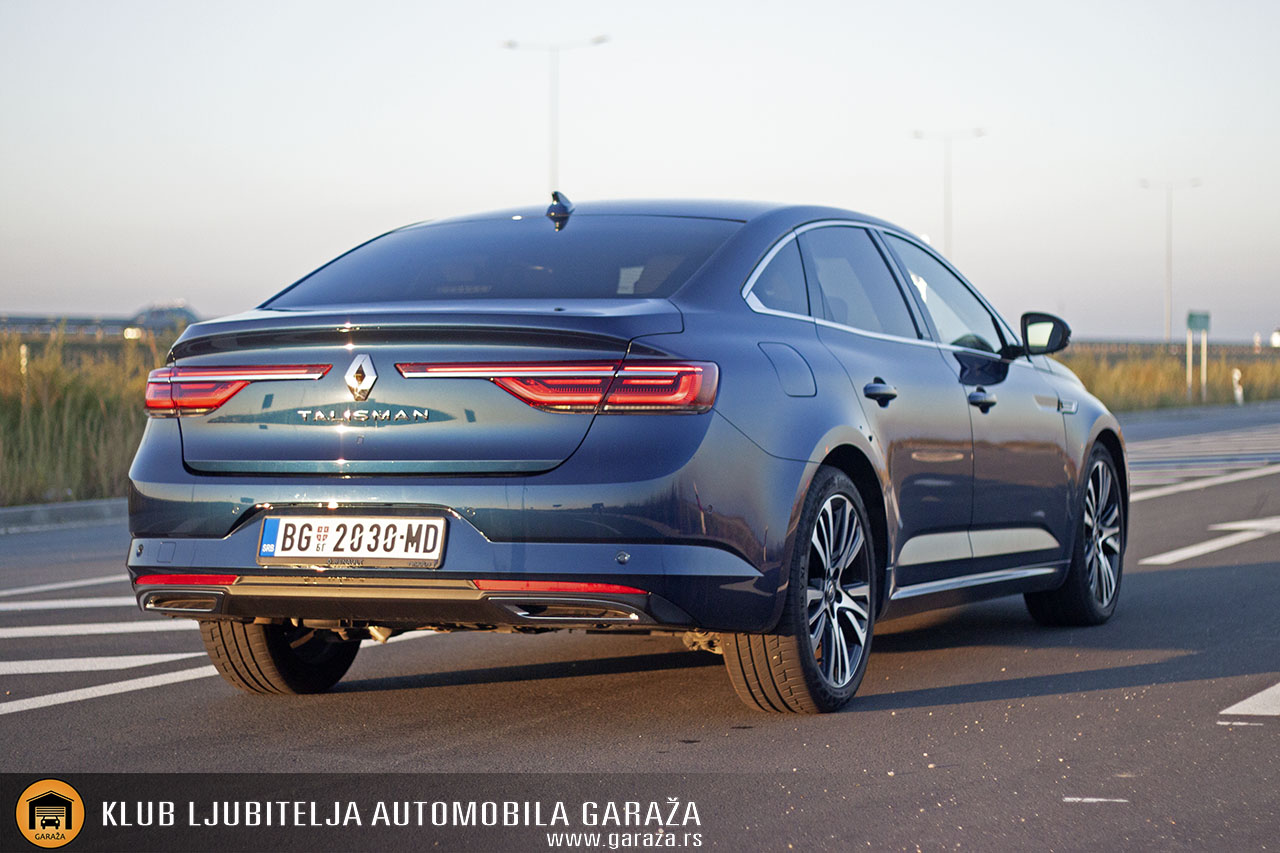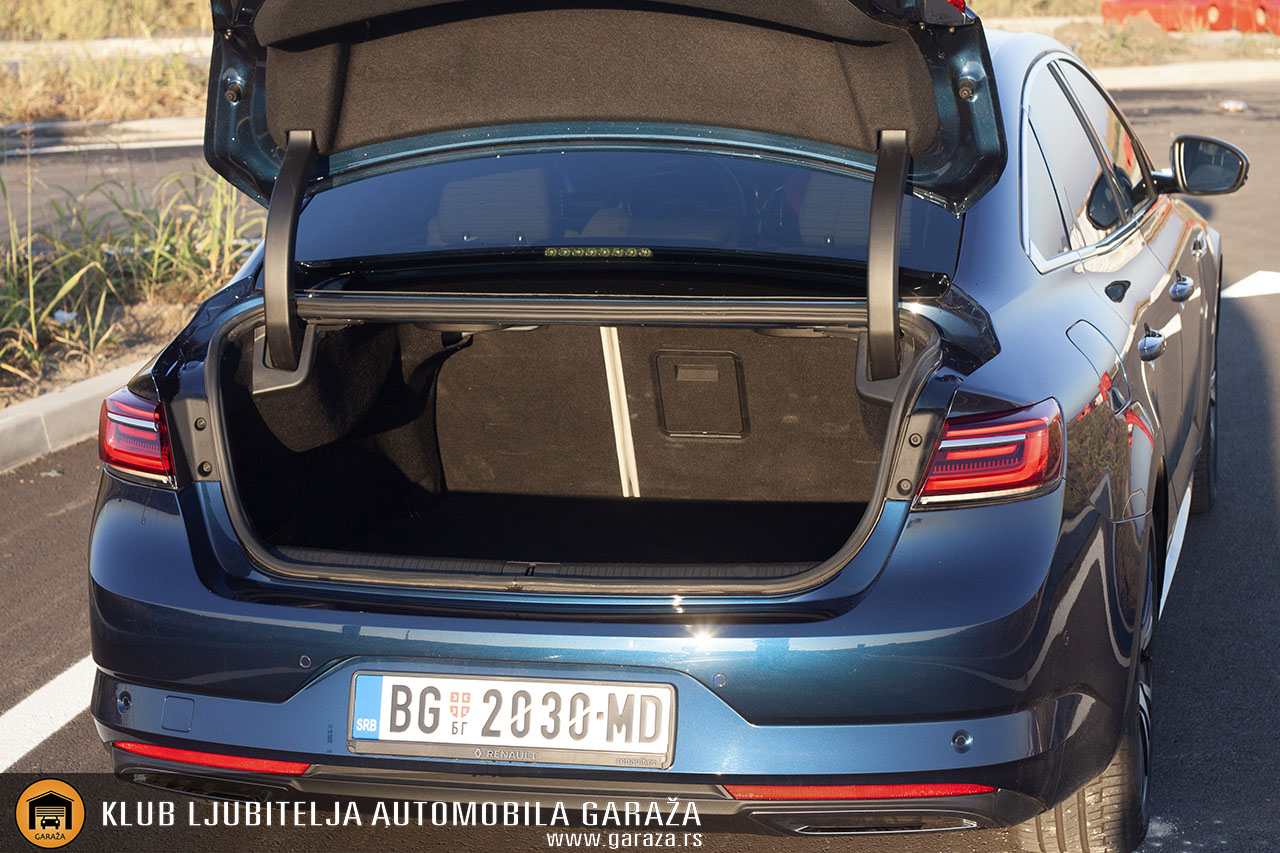 Kada govorimo o prtljažniku, Talisman poseduje takozvano duplo dno. Uključujući i prostor ispod lažnog poda zapremina iznosi 600 litara prema VDA standardu što je i očekivano za limuzinu D segmenta, dužine 4.853mm. Svakako sasvim dovoljno za sve privatne ili poslovne potrebe. Limuzinska izvedba iliti Berline, kako je nazivaju francuzi, podrazumeva funkcionalni hendikep po pitanju otvora prtljažnika te je u tom smislu svakako bolja karavanska verzija. No ukoliko se u slobodno vreme ne bavite prevozom bele tehnike za komšiluk i prijatelje, nećete primetiti nikakav problem.