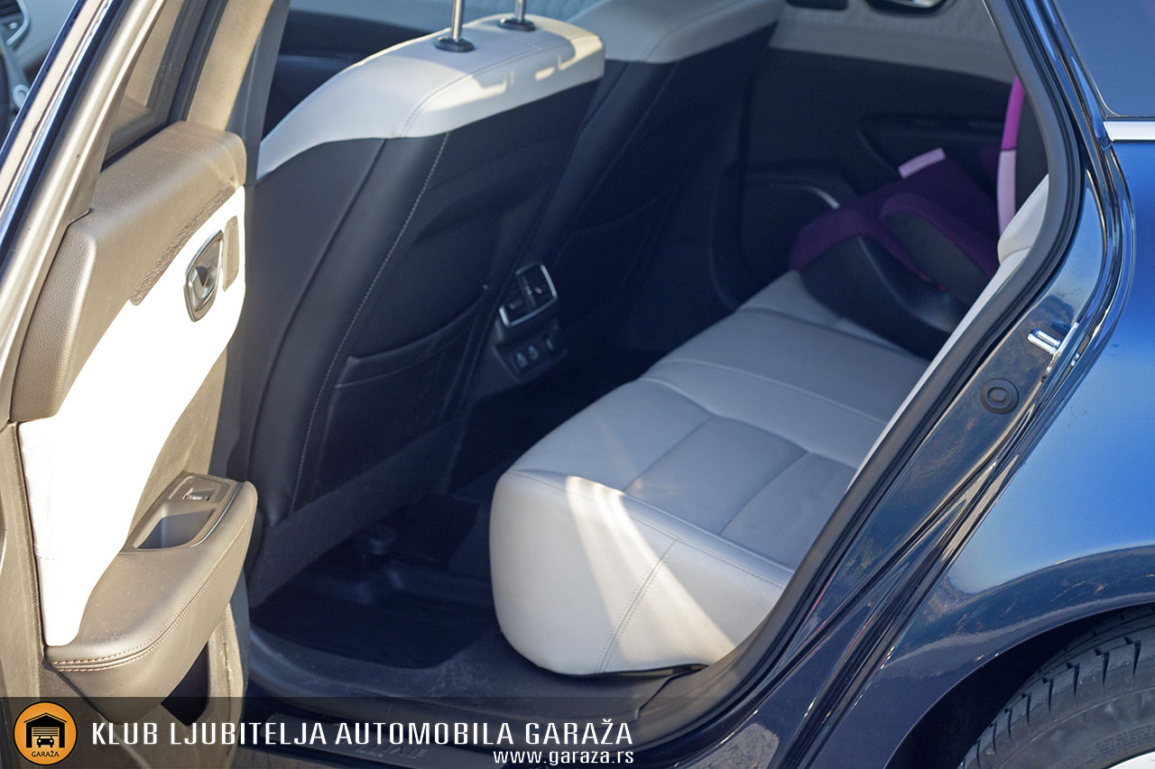 Udobnost i komfor osetiće i putnici na zadnjim sedištima. Međuosovinski razmak od gotovo tri metra, preciznije 2.809mm omogućava dovoljno prostora za sve putnike. Zameramo nešto lošiju preglednost pozadi. Osim što je poklopac prtljažnika visok pa samim tim umanjuje preglednost tu je i nezgodno postavljeno treće stop svetlo. Smešteno je na sredini zadnjeg stakla te pogledom u retrovizor delimično zaklanja automobil iza, pogotovo ako se isti nalazi preblizu. Često se vidi se samo gornji deo vozila, ali ne i donji gde su svetla. pa u uslovima slabije vidljivosti automobil iza nije dovoljno vidljiv.