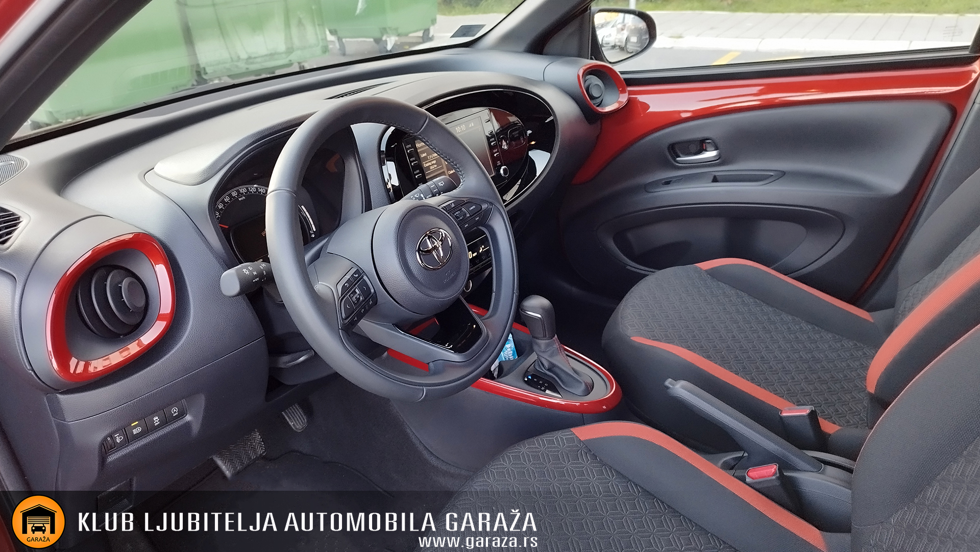 Toyota Aygo X poseduje digitalnu instrument tablu koju ne deli sa drugim modelima, a tu je i dodatni ekran multimedije.Komade klima urerđaja su odvojene što pozdravljamo. Iako nema previše prostora i sve je, nekako, minijaturno, ipak se nalazi prostor i za mobilni telefon koji se može bežičćnp punti. Tu su i otvori za čaše. I sve je nakkao dobro organizovano, da nemate osećaj da vam nešto bitno nedostaje.