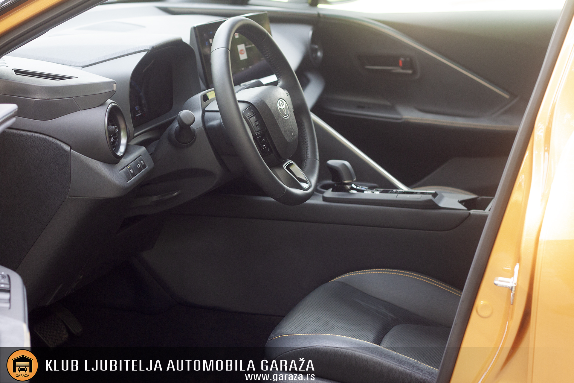 Enterijer je definitivno drugačiji, ima tu dosta zanimljivih elemenata, ali vas možda neće oduševiti kao spoljni izgled. Nakon iskustva vožnje Priusa, sada nam je već sve poznato i ne tako neobično. Iskustvo nam govori da Toyota uvek stavlja funkcionalnost isped izgleda, a vrlo brzo se u to uveravamo. Položaj za upravljačem je odličan, ergonomija na vrhunskom nivou, sve je postavljeno baš kako treba. Sedišta presvučena veštačkom kožom su izuzetno lepo oblikovana i ono što uvek krasi Toyotu, vrlo udobna. Iza upravljača sada je kompletno digitalna instrument tabla na ekranu dijagonale 12,3 inča. Naravno, omogućeni su različiti prikazi, a svaki od preefinisanih ekrana se može dodatno prilagođavati. Dodatno tu je prikaz osnovnih informacija na vetrobranskom staklu, tako da se pogled sa puta ne skreće bespotrebno.