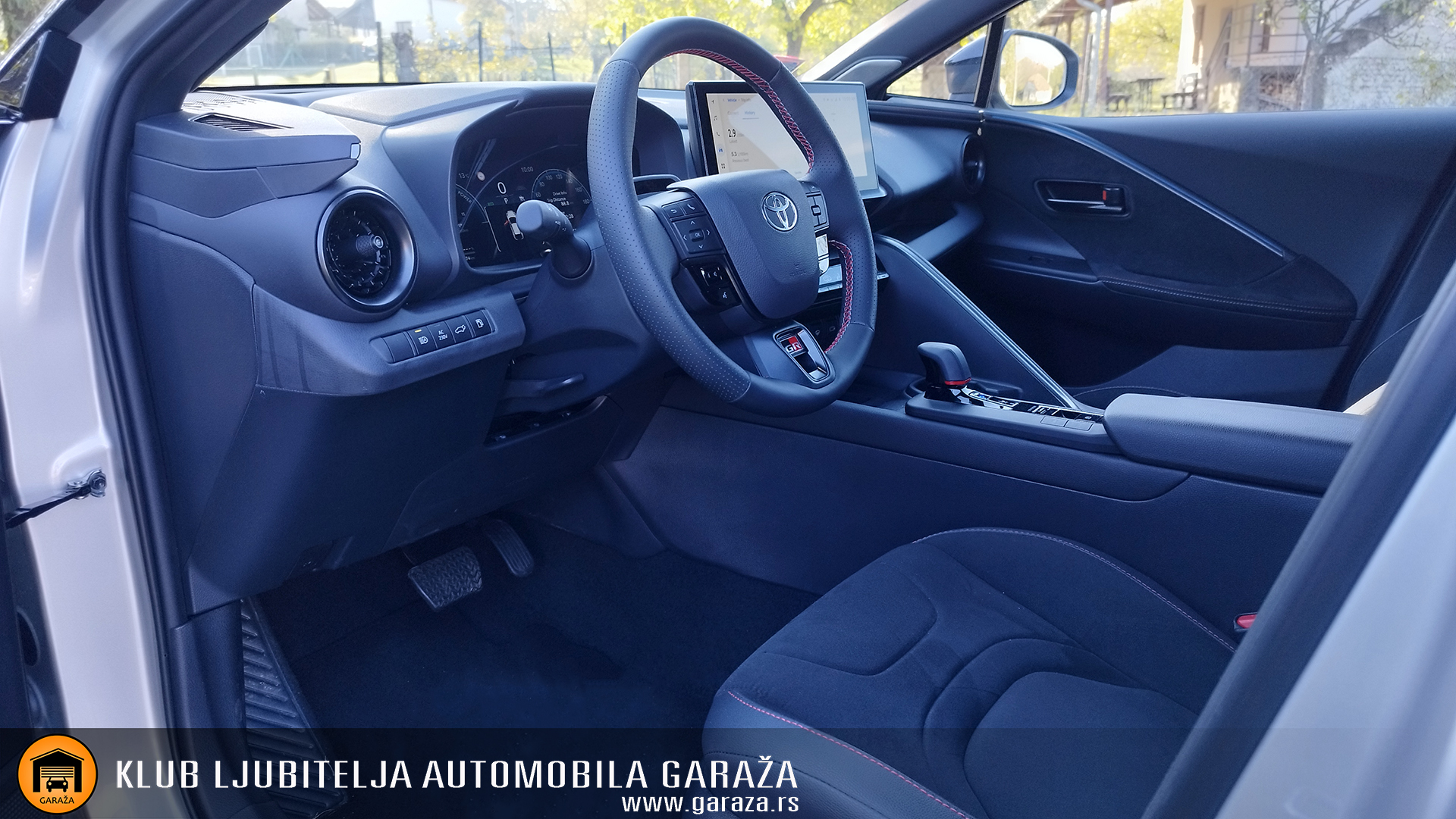 GR Sport enterijer odiše sportskim duhom, ali ne gubi na praktičnosti i udobnosti. Sportska sedišta sa GR oznakama pružaju odličnu podršku u vožnji, dok je volan obložen kvalitetnom perforiranom kožom. Središnji 12,3-inčni ekran omogućava jednostavno upravljanje multimedijom, navigacijom i mnogim podešavanjima vozila. Digitalna instrument tabla donosi sve potrebne informacije vozaču, uključujući detaljne podatke o radu hibridnog pogona i dometu u potpuno električnom režimu.
