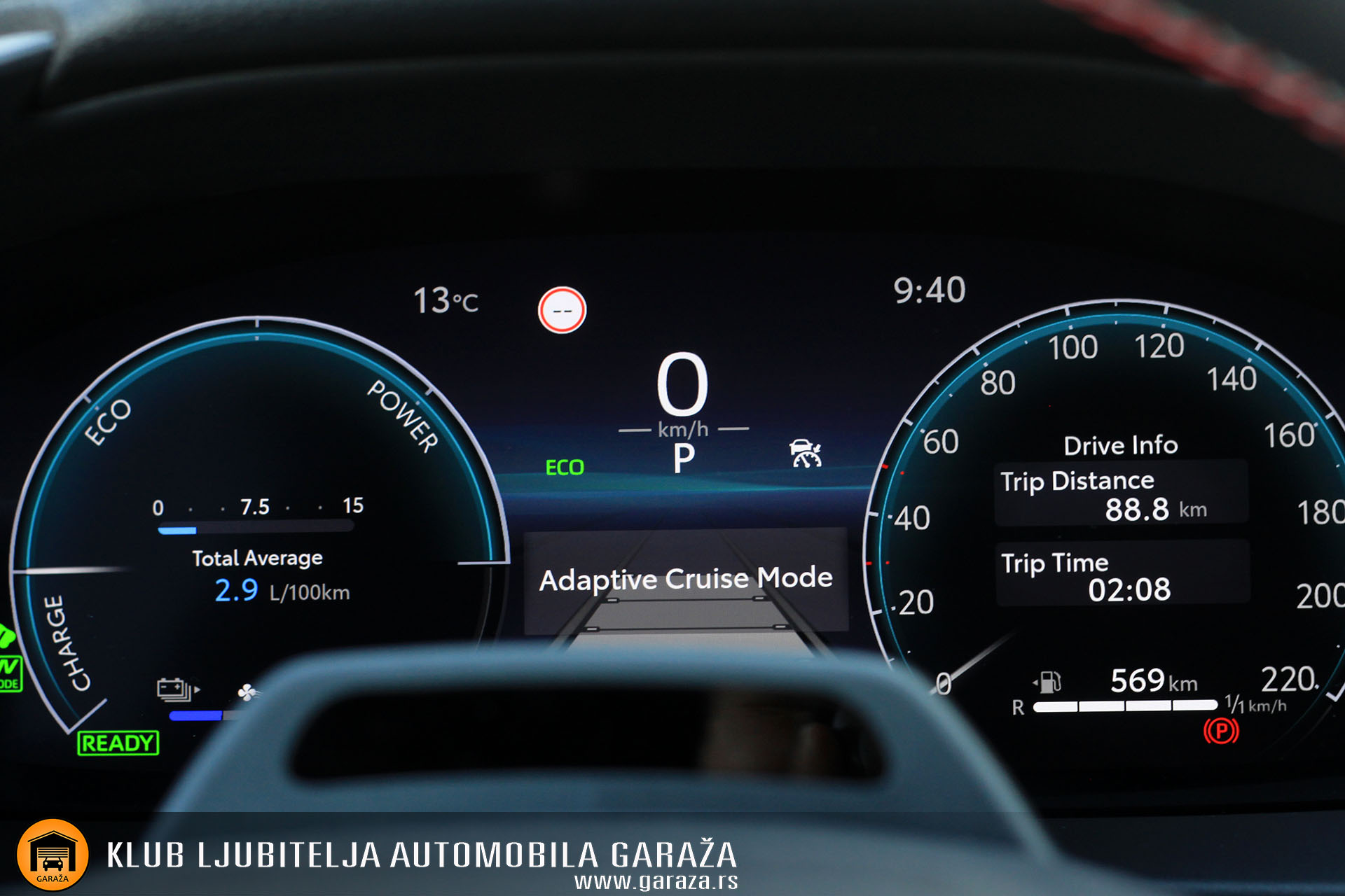 Prtljažnik kod PHEV verzije ima zapreminu od, možemo reći, iznenađujućih 310 litara. Što je nešto manje u odnosu na standardnu hibridnu verziju zbog prostora koji zauzima baterija. Ipak, dvostruko dno omogućava bolju organizaciju prtljaga, jer se ispod podnice mogu ostaviti sitnije stvari i obavezna oprema. Da, svaako manje od konkurencije, ali ne može se reći da je ovo značajan nedostatak. Ipak pun kpacitet prtljažnika koristimo tek par puta godišnje, a tu je uvek i opcija krovnog kofera.