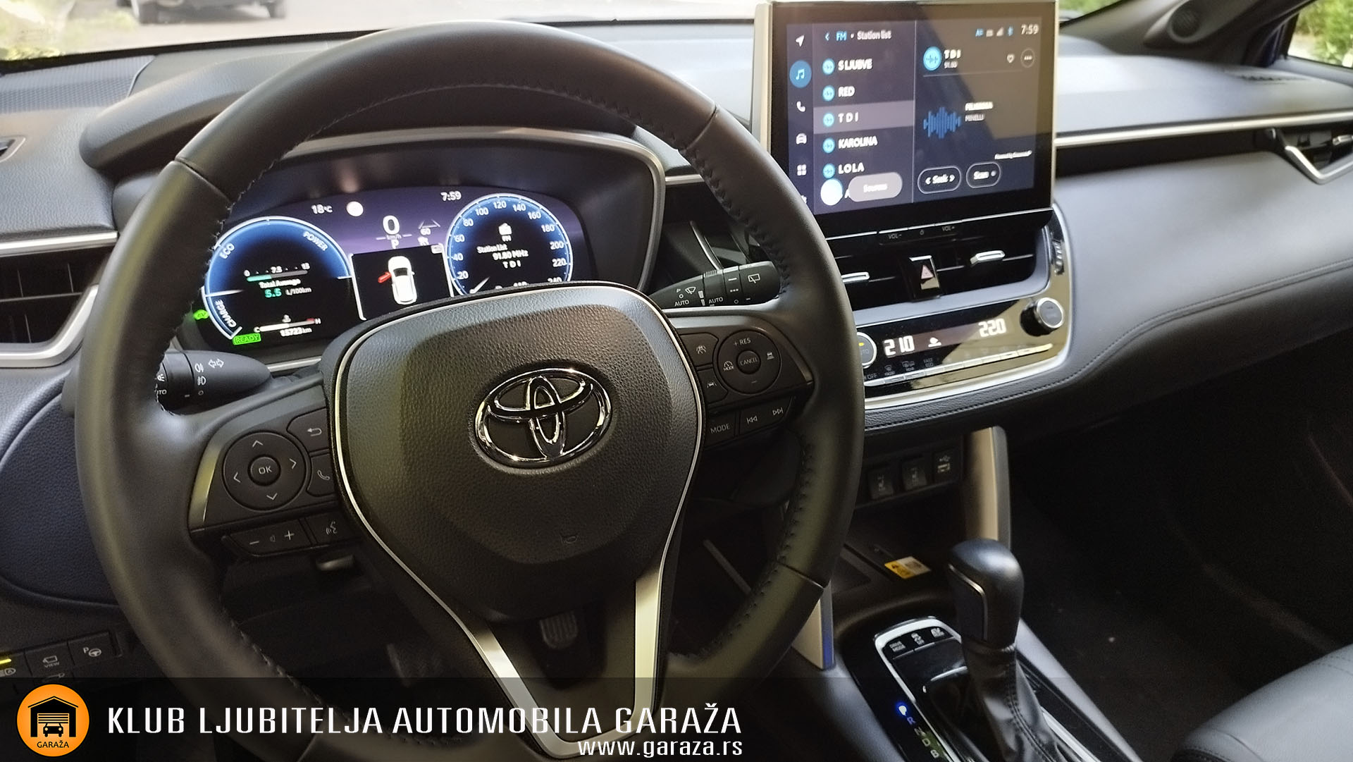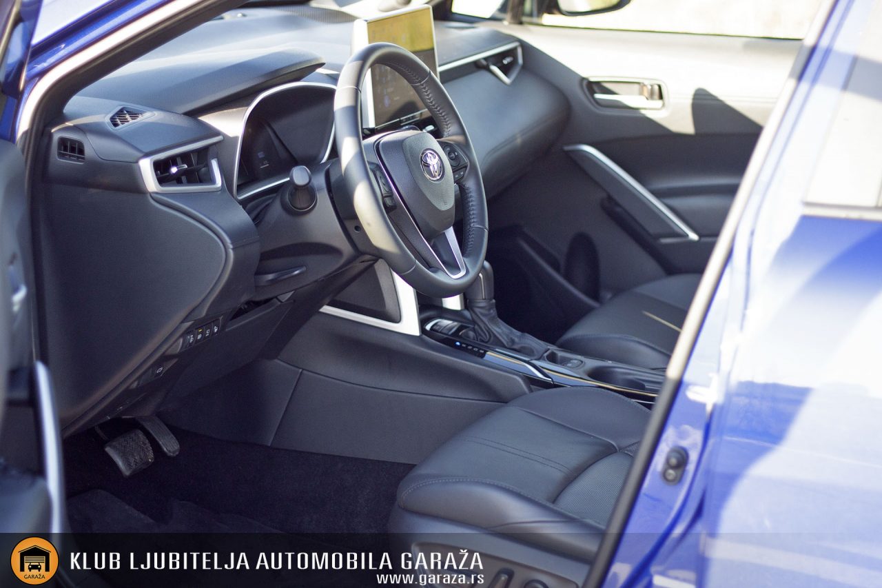 Osim prostrane kabine, enterijer nove Corolle Cross donosi puno toga novog. Da se razumemo, test vozilo je opremljeno najvišim paketom opreme pa je stoga i utisak sasvim sigurno drugačiji nego u nižim paketima. No potpuno novo radno okruženje vozača pokazuje koliko je Toyota napredovala sa ovim modelom. Sada ispred nas vidimo potpuno digitalnu instrument tablu, vrlo dobro organizovanu i sa jasnim prikazom svih informacija. Centralnim delom dominira 10.5 inčni ekran pomoću kojeg se upravlja novim Toyota Smart Connect multimedijalnim sistemom. Upravo je to jedan od elemenata na kom vidimo ozbiljan napredak, sada je tu potpuno novi interfejs koji izgleda daleko bolje u odnosu na stari. Napominjemo da mnoge funkcije nije moguće koristiti u toku vožnje zbog bezbednosti, ali su tu zato prečice na multifuncionalnom upravljaču, za upravljanje audio uređajem ili telefonom kojij je povezan bluetooth tehnologijom. Kompletno digitalna tabla ima više opcija prikaza. Dok drugi poizvođači imaju za nijansu atraktivnija rešenja, kod Toyote je svedeno na najbitnije informacije bez dodatnih efekta koji odvraćaju pažnju. I to nam nimalo ne smeta.