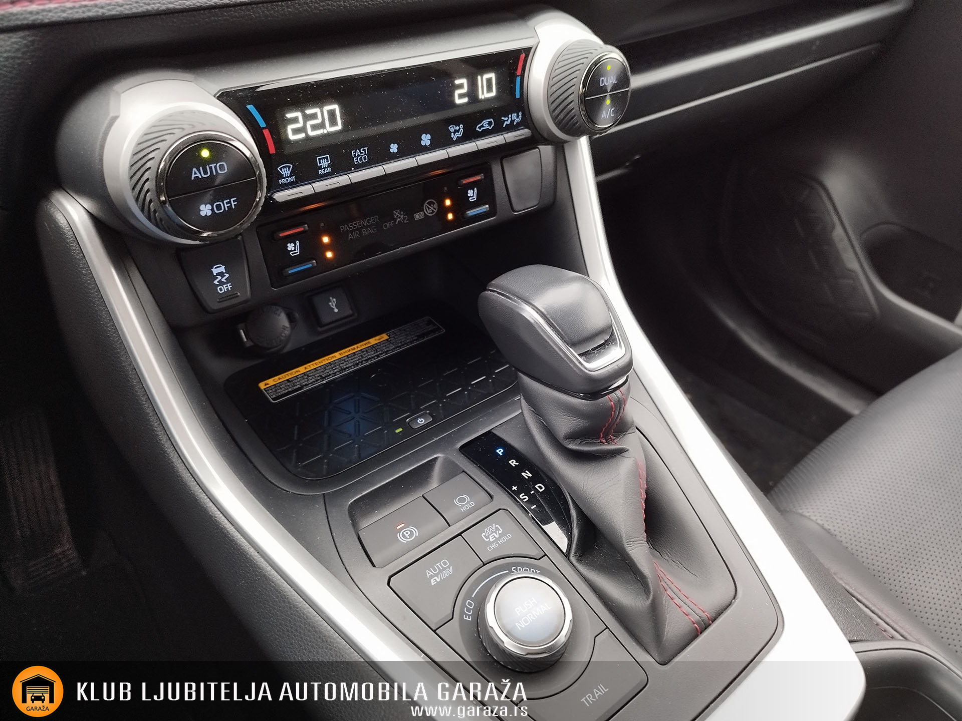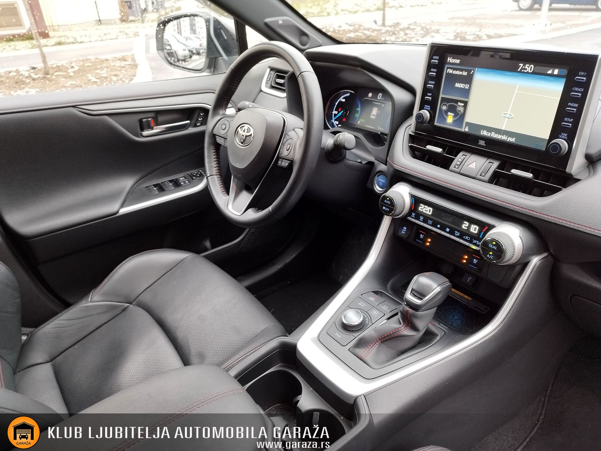 Primećujemo da je instrument tabla delimično digitalna, sa centralnim ekranom koji pruža sve potrebne informacije. No tu je Head-up display, koji dodatno olakšava praćenje podataka tokom vožnje. Multimedijalni sistem, iako nije najnovije generacije, nudi sve što je potrebno. Dodatno, u voj opremi RAV4 poseduje bežično punjenje telefona, dok se automatski klima uređaj gotovo podrazumeva u ovoj klasi. Svakako pozravljamo fizičke tastere koji su ovde dodatno gumirani, što doprinosi dugotrajnosti i prijatnom osećaju pod prstima.