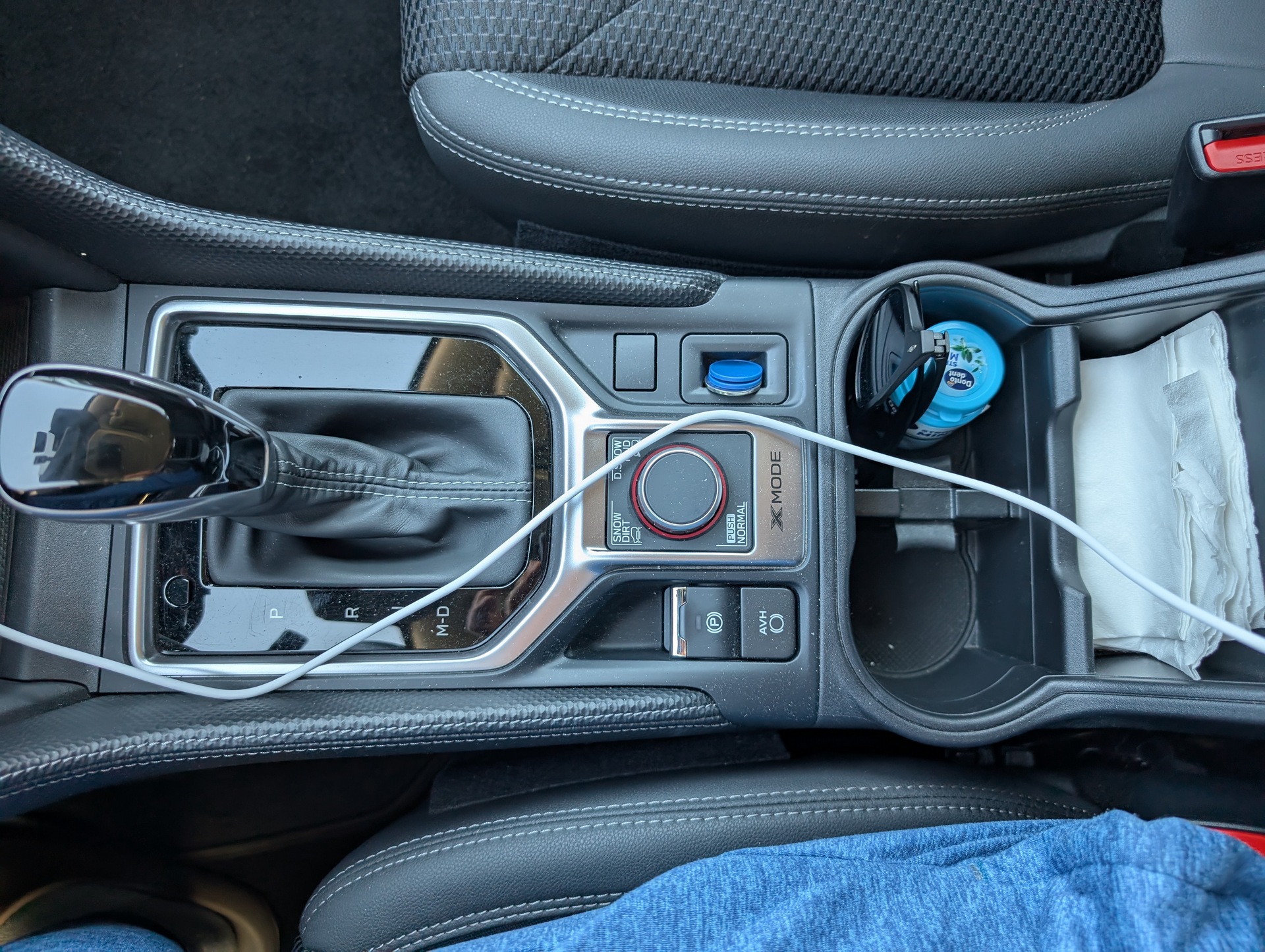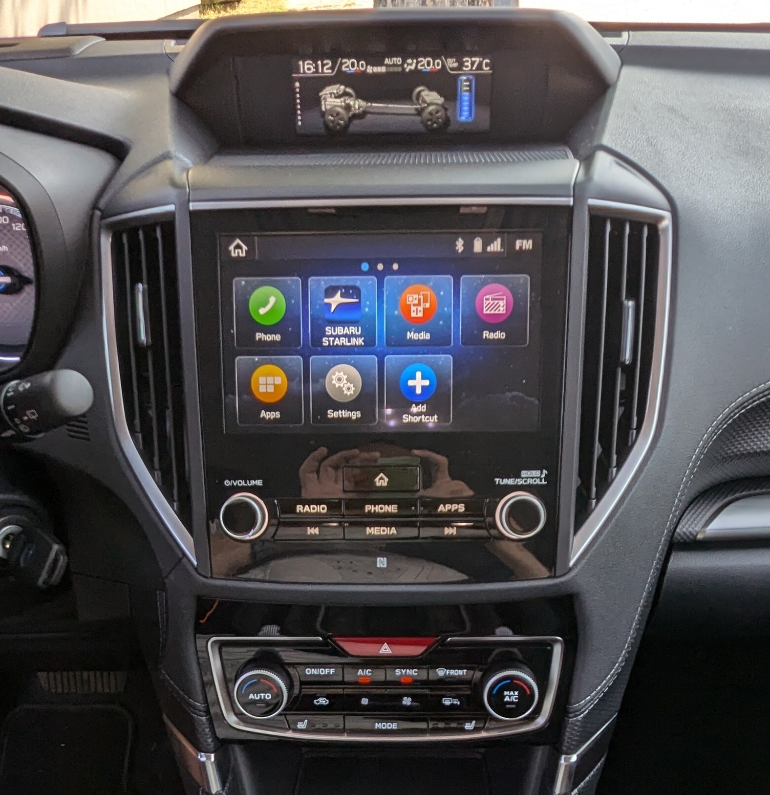 Apple Car Play i Android nisu bežični, nema ni bežičnog punjača za mobilni telefon, dakle, sve mora na kabl, ali bar postoje dva USB-ulaza (i još dva pozadi). Konekcija sa Android Auto aplikacijom je stabilna i integracija u Subaru Starlink sistem je dobra. Međutim, kada pominjem Subaru Starlink sistem, moram se dotaći i aplikacije, koja kod nas ne može da se instalira (prosto, nije podržana u Srbiji). Dakle, vozač Subarua će u Srbiji ostati potencijalno uskraćen za određene funkcionalnosti (koje na višim paketima idu i do predgrevanja motora i automobila i tome sličnog). Opet – šteta, ali prosto treba biti spreman na to kad se uzima Subaru auto u Srbiji (što sam ja svakako bio) i nekako se osloniti na to da će se najveća funkcionalnost iz multimedije dobijati iz Android Auta.