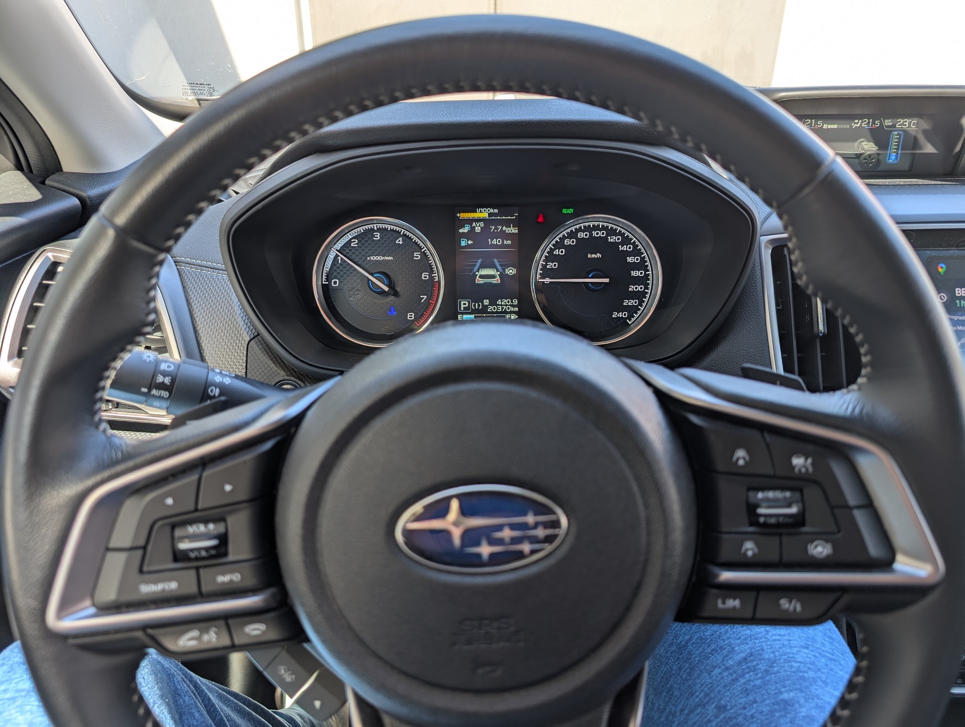 Samo još da dodam, oprema je iznenađujuće dobra za jedan osnovni paket – nešto po čemu se opet Subaru i Honda (pa donekle i Toyota) izdvajaju u odnosu na evropske i korejske proizvođače. Svakako da neću sada navoditi sve stavke, ali pored gotovo svih aktivnih (i naravno pasivnih) sistema bezbednosti, tu su recimo i full-LED automatska svetla sa samopodešavajućim uglom snopa (dakle, prati zakretanje volana), „šifteri“ na volanu, Sports i Inteligent modovi vožnje + X-Mode za off-road vožnju, automatsko zaustavljanje vozila (AVH) i mnogo drugih stavki, koje bismo, ruku na srce i očekivali u vozilu ove cene. Za neke stavke mi se činilo da su bezvezno izostavljene sa spiska i najverovatnije radi jasnog razdvajanja paketa, ali ispostavilo da mi ništa posebno ne fali.