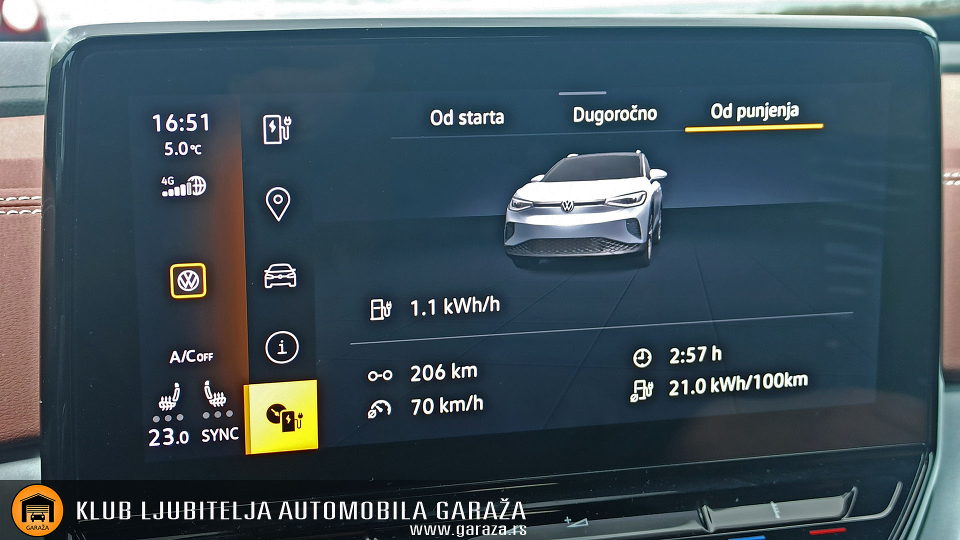 Ispostavilo se da bojazan pred put nije bila opravdana i da smo punjenje mogli obaviti i po povratku u Beograd, mada bi se vratili na rezervi. ID.4 je ovim tempom i na ovoj deonici trošio 21kWh/100km što je za 1kWh manje od dugoročnog proseka koji stoji upisan u putnom računaru. Po povratku nam je ostalo još 100km dometa što je bilo dovoljno da se još provozamo po gradu i sutradan ga vratimo generalnom uvozniku Volkswagena u Srbiji, kompaniji Porsche Srbija i Crna gora, čijom ljubaznošću smo dobili automobil na test.