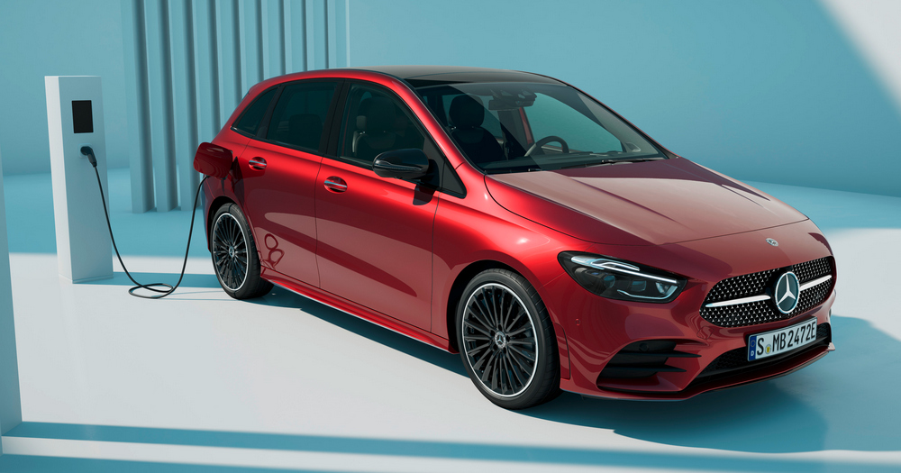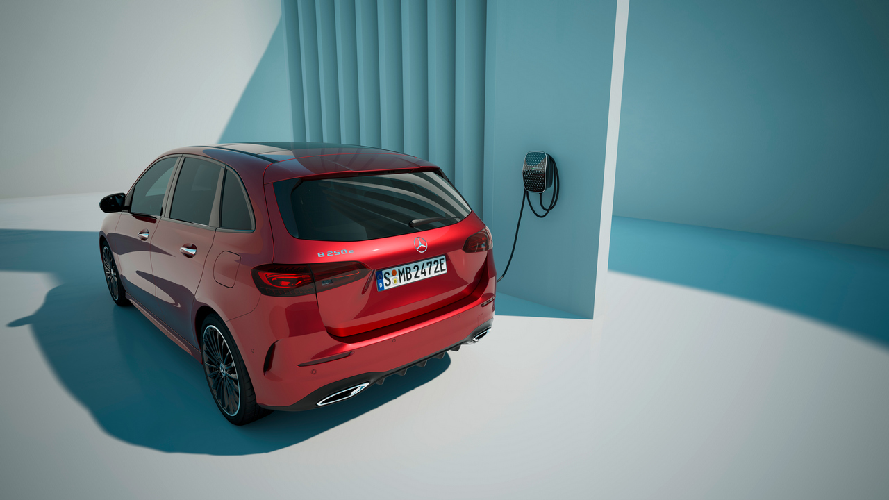 Plug-in hibrid sa dodatom snagom: Plug-in hibridi nove B-Klase (Mercedes-Benz B 250 e, potrošnja goriva kombinovana 1,2-0,9 l/100 km, potrošnja električne energije kombinovana 17,4-15,4 kWh/100km, emisija CO2 kombinovana 27-20g/km)[2] . Proces punjenja je takođe optimizovan: pored standarda od 3,7 kW, unapređena baterija sada može da se puni i naizmeničnom strujom i do 11 kW, umesto samo 7,4 kW kao ranije. Pored toga, kupci i dalje imaju mogućnost punjenja baterije sa direktnom strujom i do 22 kW. DC punjenje od 10 do 80% traje oko 25 minuta – jednostavno iskustvo punjenja, naročito u dnevnom životu. Elektromotor u novoj B-Klasi je takođe revidiran i postiže 80 kW snage nakon ažuriranja – što je povećanje od 5 kW.