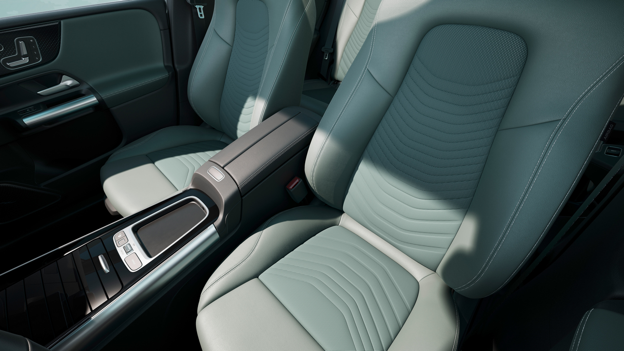 Atraktivan asortiman boja enterijera i materijala omogućava visok stepen prilagođavanja. U osnovnoj varijanti, sedišta su još više unapređena sa svojom trodimenzionalno reljefnom ARTICO navlakom i najboljom ergonomskom udobnošću. „Progresivne“ paket opreme nudi ekskluzivnost karakterističnu za Mercedes u bojama crne, crne/makijato i novu crno/ljubičasto sivu. Sedišta u ovom slučaju se takođe mogu nadograditi na kožna sedišta u crnoj ili bahia braon boji. Novorazvijeni trim element sa zvezdanim šarom stvara uzbudljiv vrhunac u enterijeru. AMG Linija je najlepša verzija nove B-Klase, sa crnim ARTICO/MICROCUT enterijerom i crvenim kontrastnim šivenjem.
