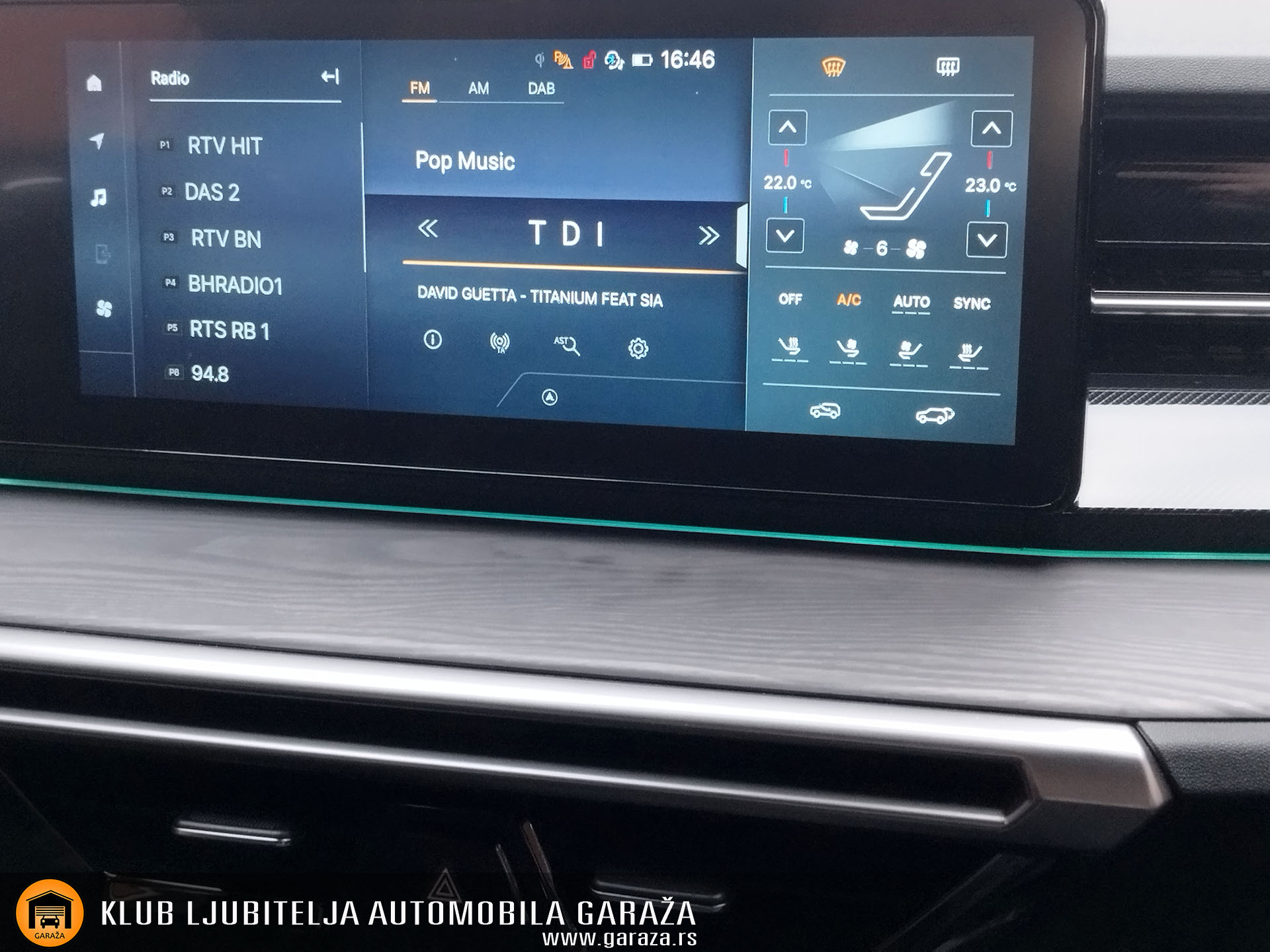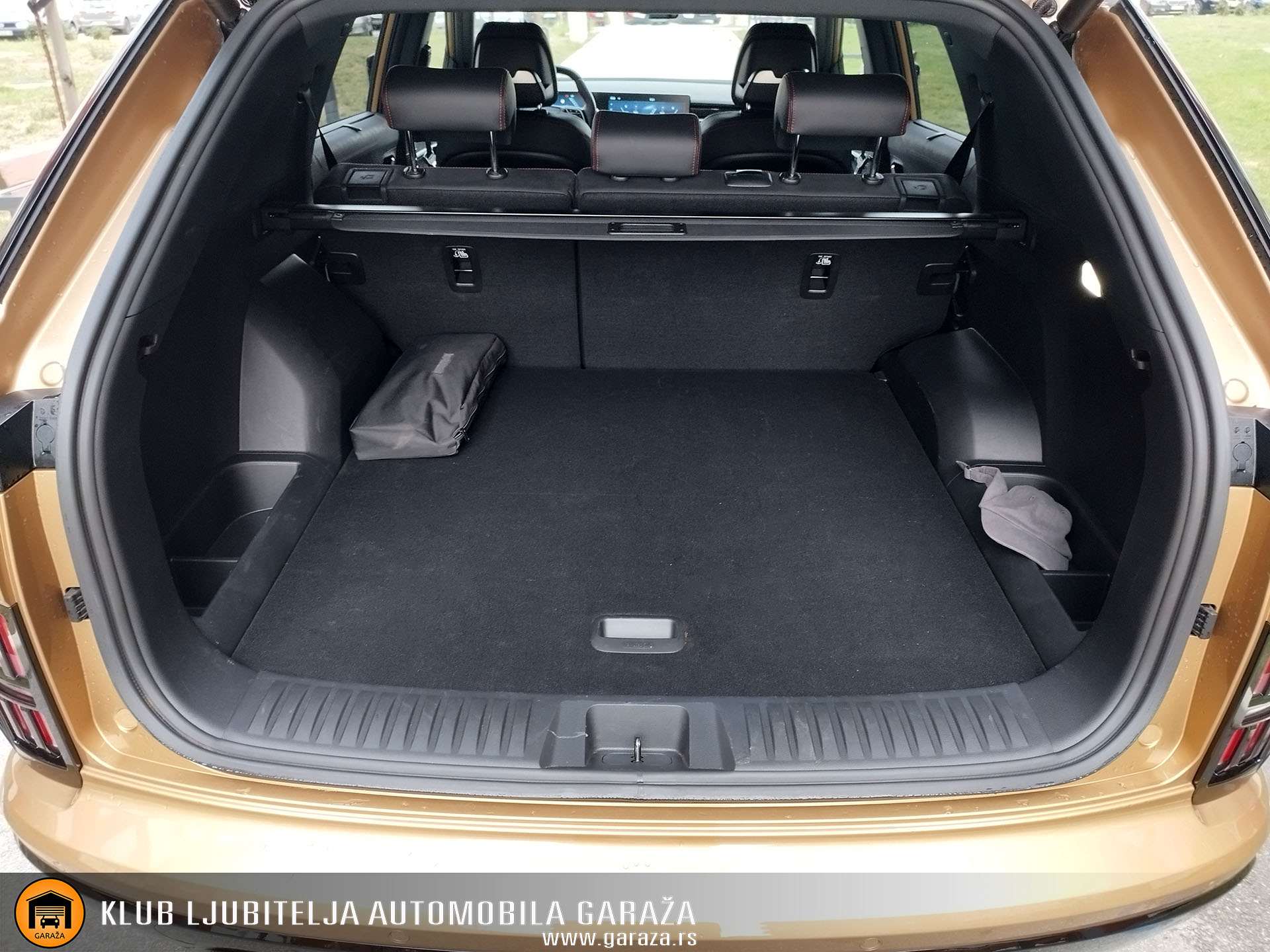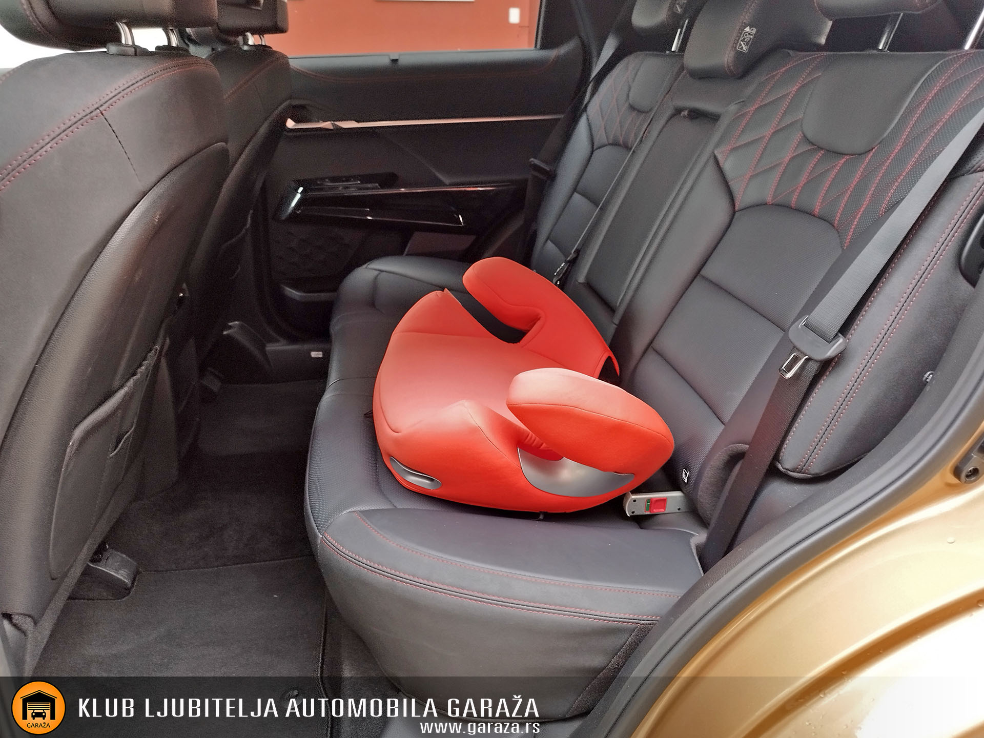 Odlično rešenje je i naslon za ruku, koji vešto krije prostor za odlaganje telefona gde se pored toga može i bežično puniti. Dopalo nam se što je zaštićen dobro tako da će teško izleteti u slučaju snažnog kočenja, pa i udara, a uvek vam je na dohvat ruke. Ukoliko nemate bežično punjenje ispod centralnog grebena predviđen je prostor za odlaganje i tu su type C konektori za punjenje kao i 12V utičnica. Zaista lepo i pametno iskorišćen prostor. USB konektor za punjenje je dostupan i pozadi, ispod otvora ventilacije za drugi red sedišta. Mobilni telefon se lako i brzo povezuje sa multimedijalnim uređajem. Apple CarPlay i Android Auto su dostupni, ali samo uz povezivanje preko kabla, ne i bežično. Ostava ispod naslona za ruku je solidno velika, taman za manju torbicu.
