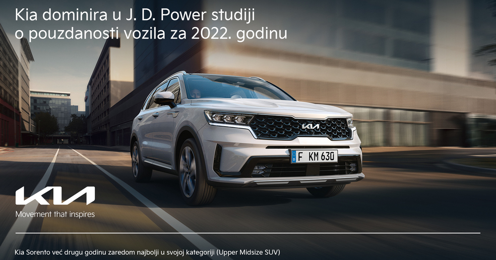 Kia Sorento se u studiji odlično pokazao – već drugu godinu zaredom bio je najviše rangirani model u svojoj kategoriji (Upper Midsize SUV).