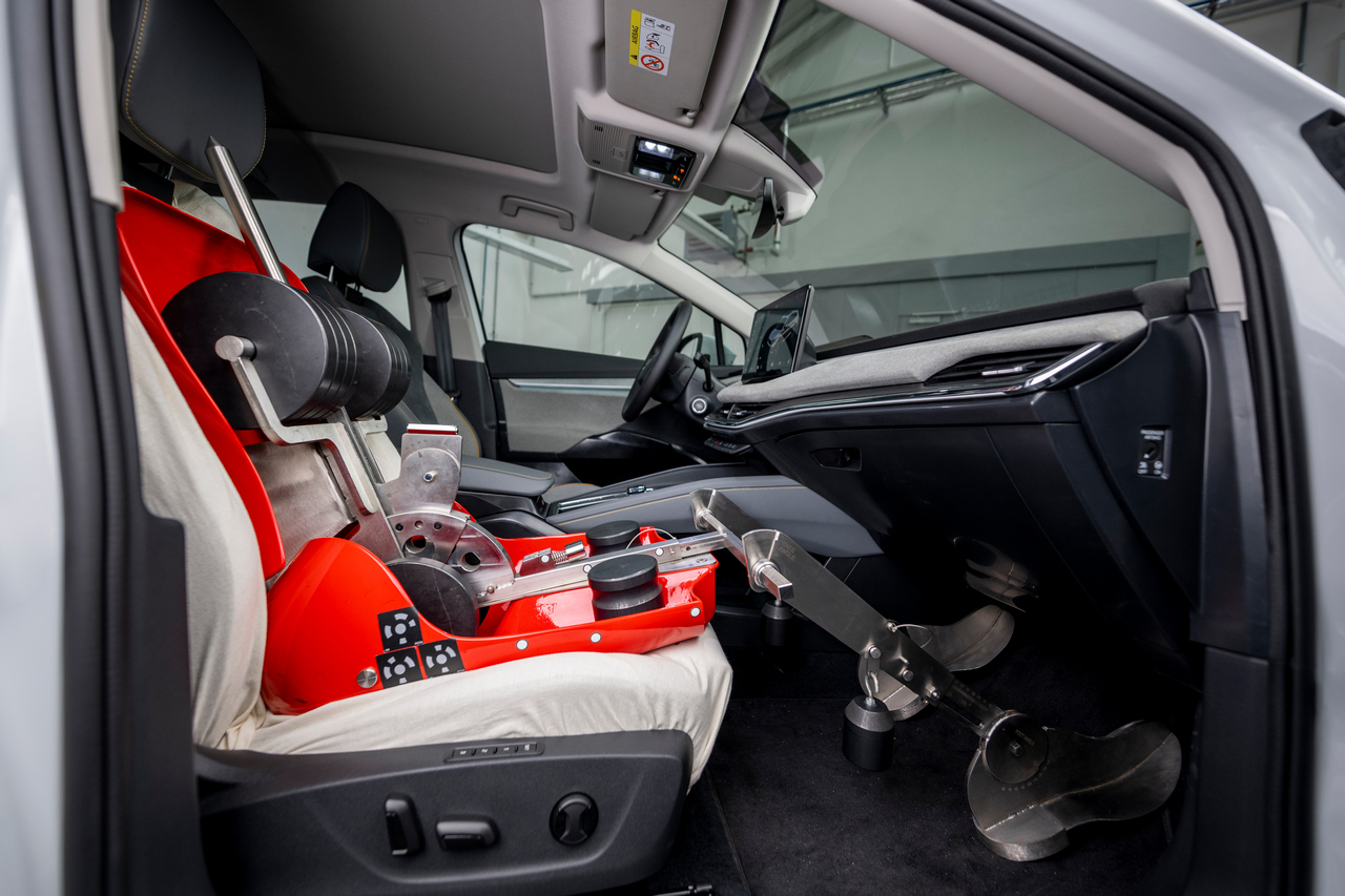 Merenje sa spuštenim sedištima relativno je složen zadatak. Na primer, prednja sedišta takođe treba postaviti u pravi položaj. „Lutke se koriste za postavljanje sedišta u položaj određen tehničkim standardom za prosečnu osobu. Zatim postavljamo polikarbonatnu pregradu iza sedišta kako bismo čvrsto ograničili prostor u kom možemo rasporediti blokove. Ovo sprečava klizanje blokova između sedišta“, objašnjava Hancko. Razni drugi prostori za odlaganje smešteni iza prednjih sedišta automobila takođe su uključeni u ukupnu zapreminu sa preklopljenim sedištima: uključuju pregrade na vratima, prostor iznad točkova i slično.