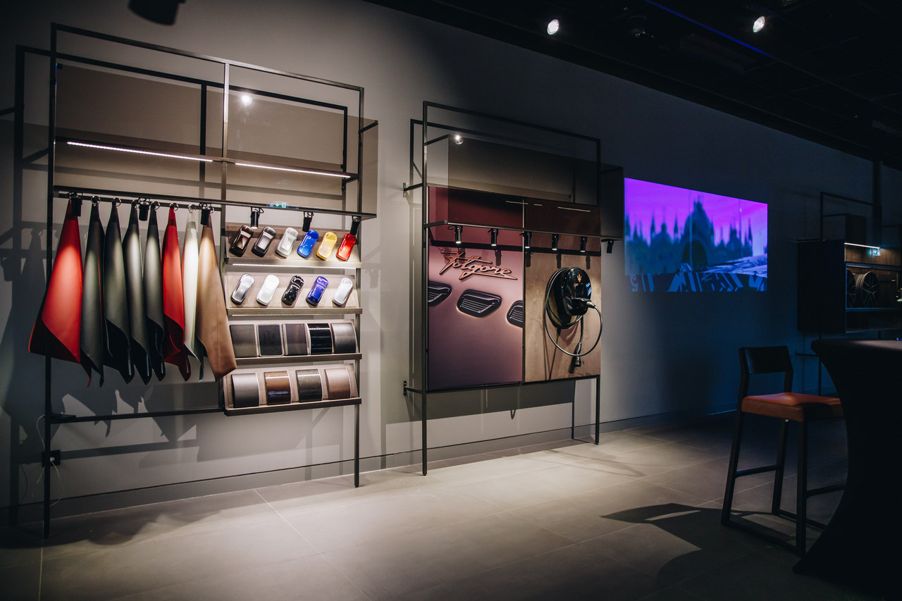 Unutar salona izloženi su aktuelni modeli Grecale, kao i 1 od 75 primeraka u svetu Maserati GranTurismo Trofeo Primaserie, dok potencijalni klijenti imaju priliku da kreiraju potpuno autentičan Maserati primerak u skladu sa svojim afinitetima kroz program individualizacije Fuoriserie.