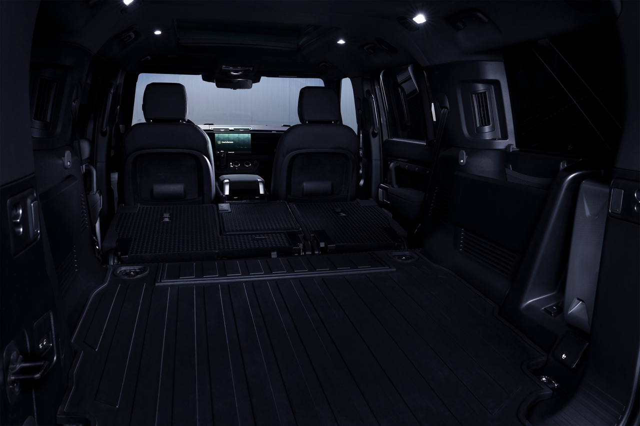 Prikladna Obloga za pod prtljažnog prostora8 dolazi kao standard uz sve modele Defender 90 i Defender 130 sa osam sedišta. Nova odlika koja uključuje unutrašnje skladištenje omogućava gotovo ravan pod prtljažnika i obezbeđuje da se ne gubi prostor a da se održava pristup D-kukicama. Nova dodatna oprema takođe je dostupna postojećim vlasnicima Defendera 90 i Defendera 130 sa osam sedišta putem njihovih lokalnih ovlašćenih prodavaca8.