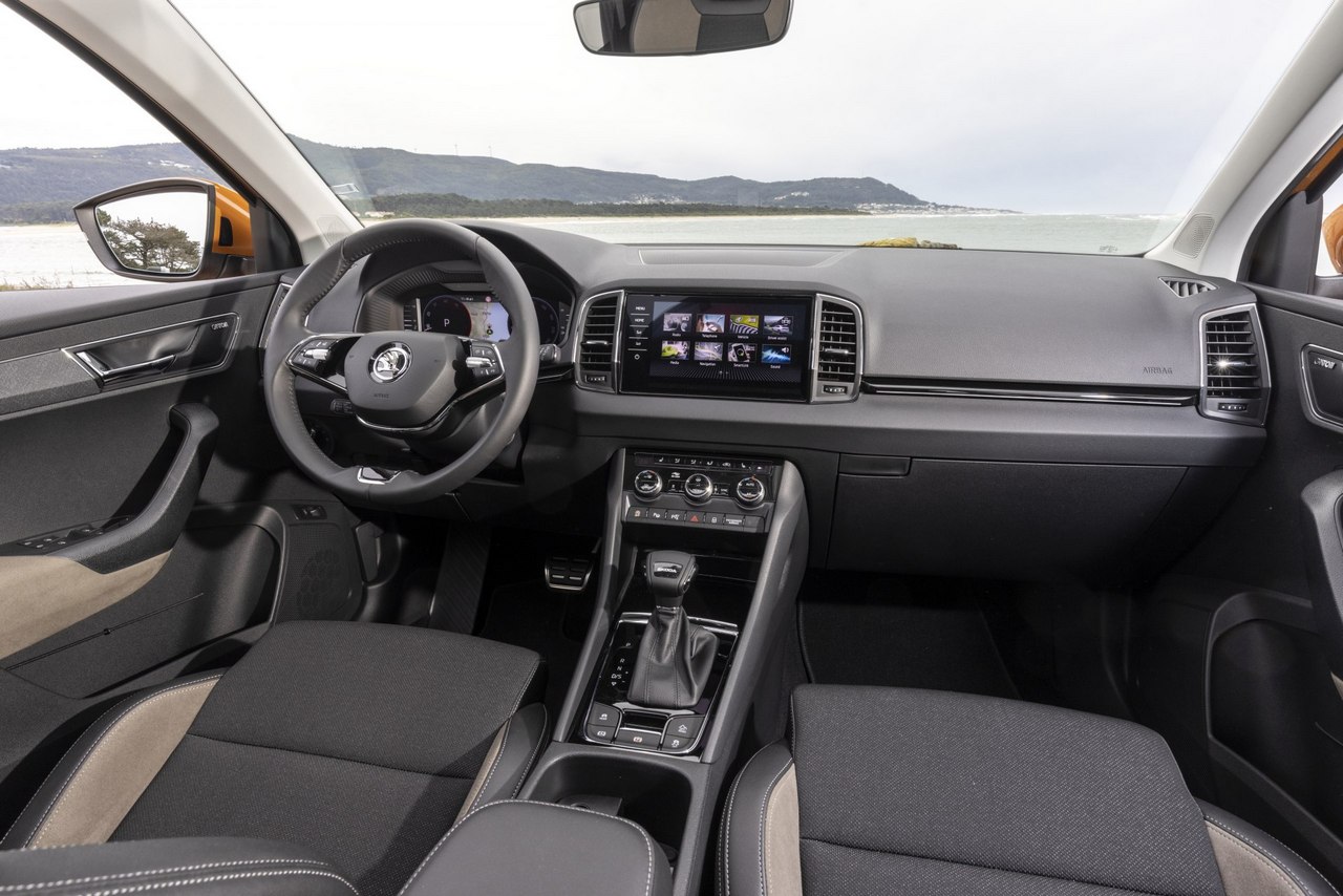 LED prednja svetla, širok spektar sistema asistencije i sigurnosne opreme (do 9 vazdušnih jastuka, prediktivni tempomat i Travel Assist, kočenje u slučaju nužde, multi-collision kočnica i dr.), zatim moderna digitalna oprema s funkcijama povezivanja i usluge, uključujući glasovnu asistenciju Laura, sve to u kombinaciji čini KAROQ modernim SUV modelom. Moderne karakteristike automobila naglašene su korišćenjem ekološki prihvatljivih, delimično recikliranih i recikliranih materijala u unutrašnjosti automobila..