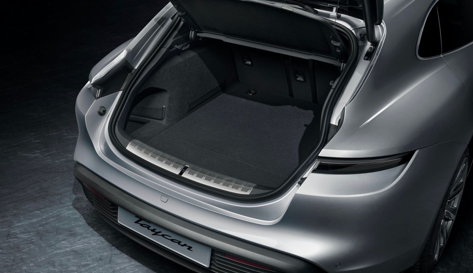 Kapacitet prtljažnog prostora zavisi od dodatne opreme. U kombinaciji sa Sound Package Plus, prtljažni prostor može da primi do 446 litara (limuzina: 407 l). Sa BOSE® Surround Sound System-om (standardna oprema za Taycan Turbo Sport Turismo), kapacitet prtljažnika iznosi 405 litara. Preklapanjem naslona zadnjih sedišta (60:40), zapremina prtljažnika se može povećati na 1212 odnosno 1171litar. Ovde se ne uzima u obzir zapremina prednjeg prtljažnika od 84 l.