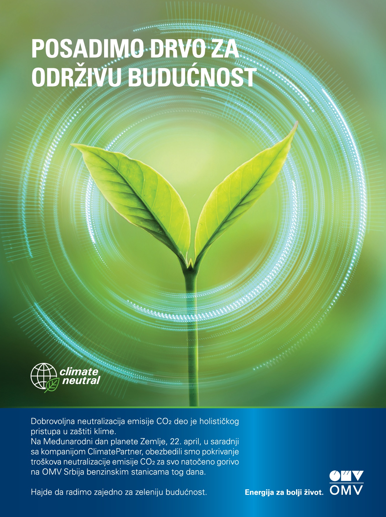 Svo natočeno gorivo na OMV Srbija benzinskim stanicama na Dan planete Zemlje 22. aprila, biće klimatski neutralno. Dobrovoljna neutralizacija emisije CO2 je deo holističkog pristupa u zaštiti klime, a na ovaj način OMV Srbija otvara novu temu putem konkretne inovativne akcije, podižući svest o tome šta kao pojedinci i kompanije možemo da uradimo kada je koncept klimatske neutralnosti u pitanju. OMV Srbija će neutralizaciju emisije CO2 celokupne količine prodatog goriva na dan Planete zemlje realizovati kroz ulaganje u internacionalni licencirani projekat pošumljavanja u saradnji sa ClimatePartner organizacijom. Takođe, sa ciljem kontinuiranog doprinosa neutralizaciji emisije CO₂ i očuvanju prirodnog bogatstva Srbije, i ove godine tim zaposlenih u saradnji sa javnim preduzećem Srbijašume organizovao je pošumljavanje u mestu Drenova.