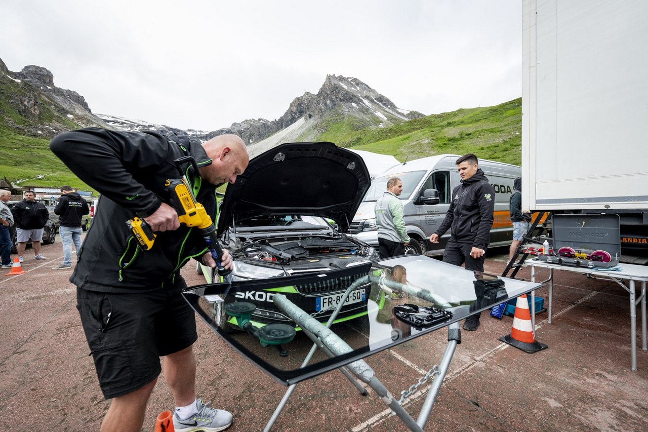 Automobile dele u nekoliko kategorija prema važnosti. ENYAQ iV, automobil direktora trke i ŠKODA SUPERB iV koji koriste komesari za trku prirodno imaju prioritet. Ne mogu se zameniti: potrebni su u trci i moraju biti u savršenom stanju. „Jednom su vozači crvenih limuzina koje koriste komesari trka parkirali automobile na ulici ispred hotela i neko je na njih bacio saksije sa cveće. Servisni tim je proveo noć popravljajući ih kako bi ujutru bili u savršenom stanju za sledeću etapu“, seća se šef servisnog tima sa osmehom.