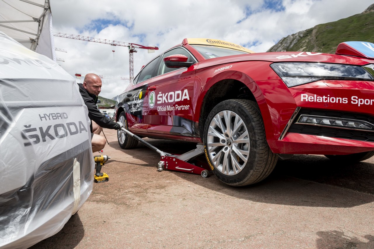 Servisni tim brine o oko 250 automobila. Devedeset procenata su ŠKODA automobili kao što su ŠKODA ENYAQ iV koji koristi direktor trke ili ŠKODA OCTAVIA, OCTAVIA iV i SUPERB iV. Ostalo su kombi vozila drugih brendova Volkswagen Group. Služba za podršku neće odbiti automobile koje koriste biciklistički timovi, važno je samo da budu ukrašeni amblemom krilate strelice.