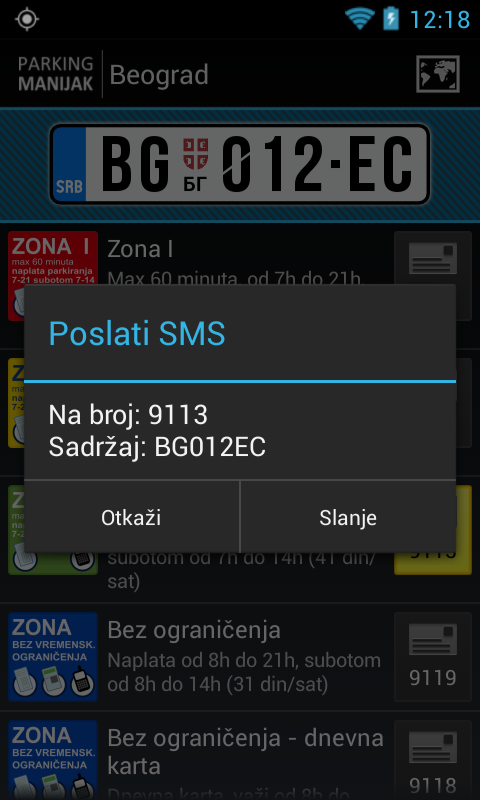 Još jedna od dobrih stvari ove aplikacije je što možete pre slanja poruke videti i koliko košta parking u toj zoni, pa ukoliko vam cena ne odgovara možete potražiti drugo mesto za parkiranje.