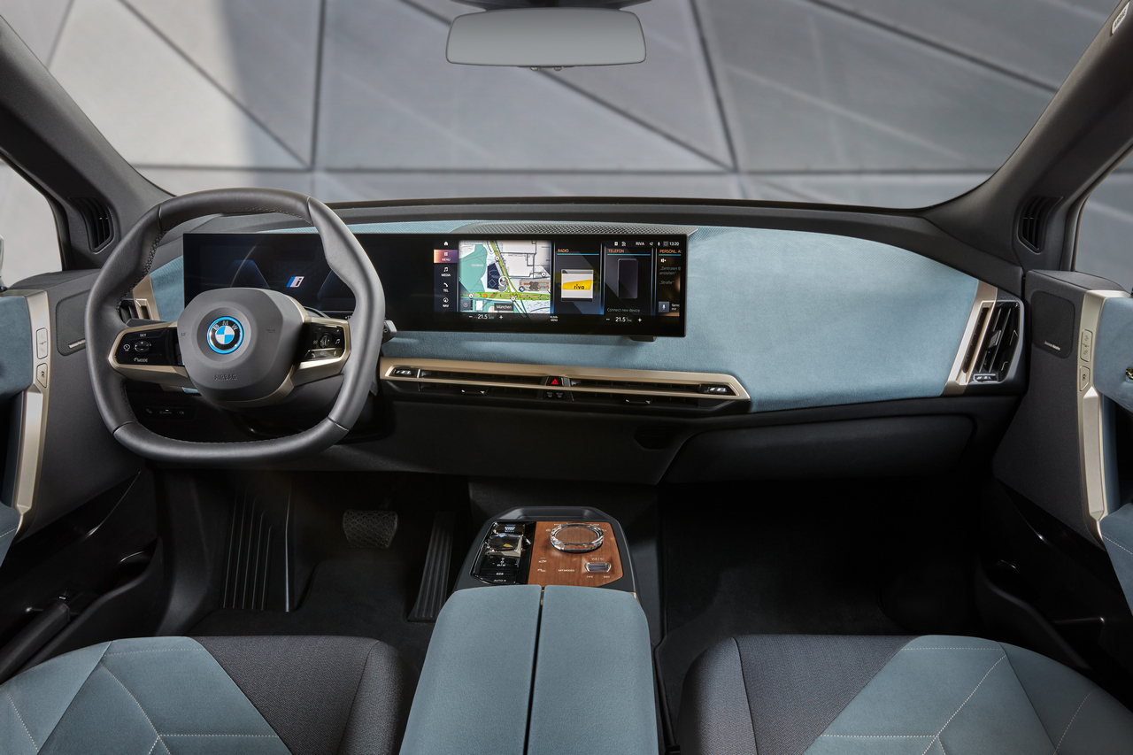 BMW iX je veoma precizno dizajniran, kako spolja, tako i iznutra. Njegova unutrašnjost stvorena je da obezbedi vrhunski kvalitet i osećaj ugodnosti. Ogroman prostor i najnovija generacija sedišta s integrisanim naslonima za glavu daju poseban ton luksuznom ambijentu. Činjenica da centralnog tunela više nema stvara dodatni prostor za noge i dovoljno mesta za skladištenja za sve potrebe kao i centralnu konzolu dizajniranu u stilu komada nameštaja vrhunskog kvaliteta. Instrument tabla s posebnim elementima i aktivnim kinestetičkim inputom, preklopnim prekidačem za odabir stepena prenosa daje jedan poseban, veoma moderan ton i izgled. Osim zakrivljenog BMW displeja, heksagoni upravljač i beskonačni projektor za integraciju opcionog Head-Up displeja daju posebnu notu fokusiranom uživanju u vožnji. Na raspolaganju vam je i ponuda tri vrste unutrašnjih završnih obloga za individualizaciju enterijera.