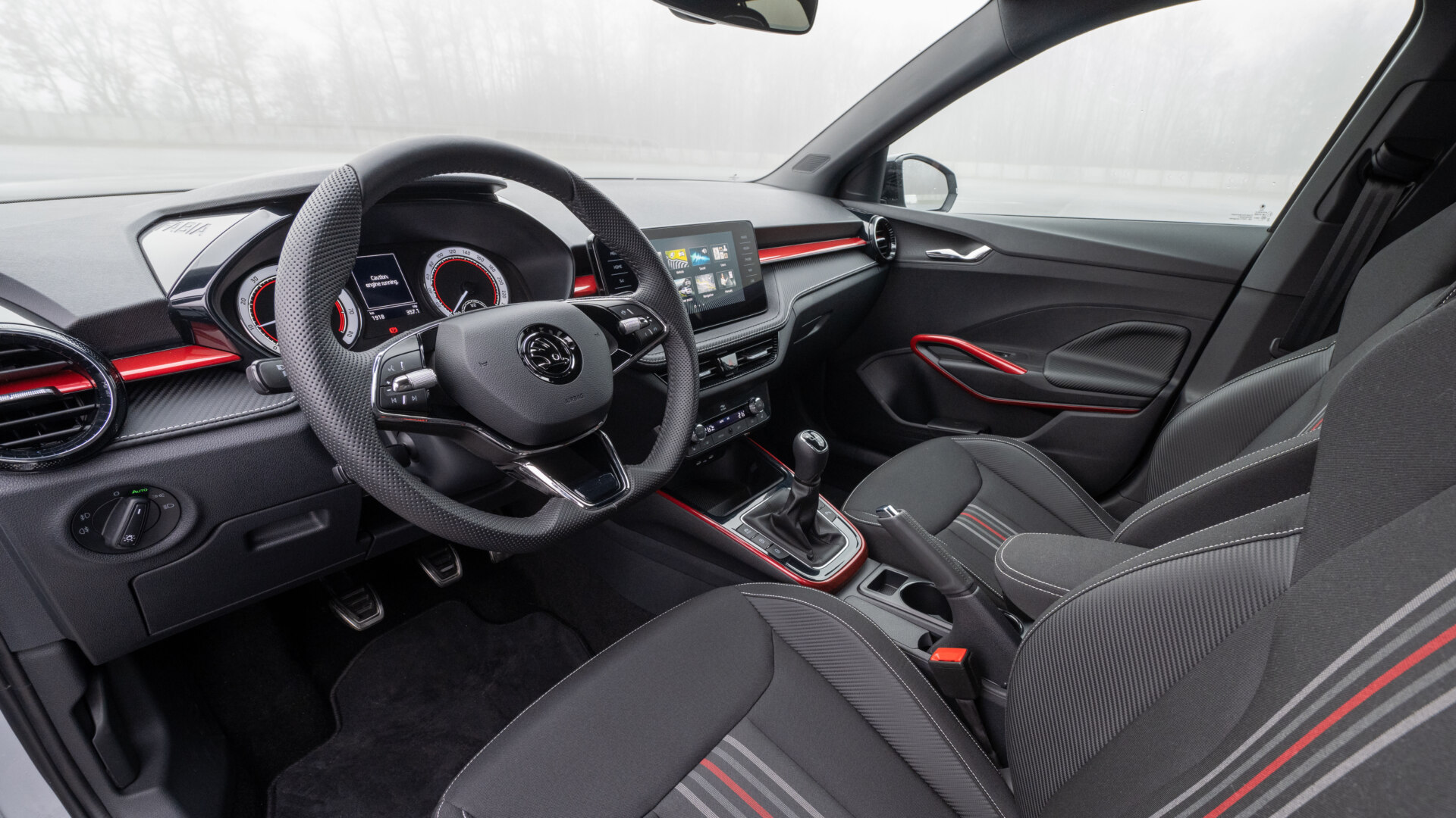 Velike su razlike i u instrumentaciji, položaju ručice ručne kočnice i sklopu papučice. Dok Fabia Monte Carlo pruža udobnost za svog vozača i putnike, Fabia RS Rally2 sve podređuje performansama i maloj težini. Ipak, neki detalji su ostali na istom mestu, kao što su ručke na vratima ili logo na volanu. Ovo, inače, ima jednu vrlo važnu funkciju: