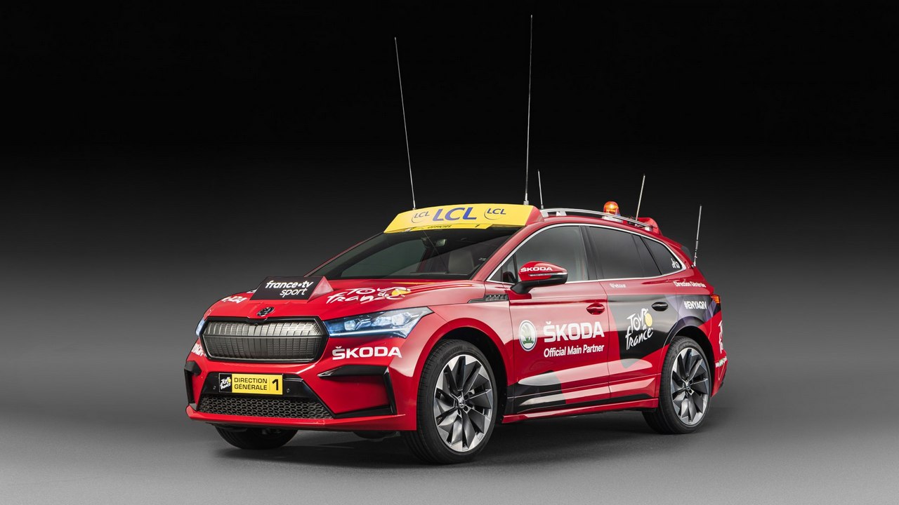 Ispred trkača, direktor trke Christian Prudhomme predvodiće trku u potpuno električnom ŠKODA ENYAQ iV. On će mahati žutom zastavom kroz krov automobila „Red Car“ na početku svake etape. Ovo je treći put da SUV model služi kao njegov mobilni komandni centar. Na nekim etapama, ŠKODA SUPERB iV s plug-in hibridnim pogonom izlaziće na stazu kao komandno vozilo.