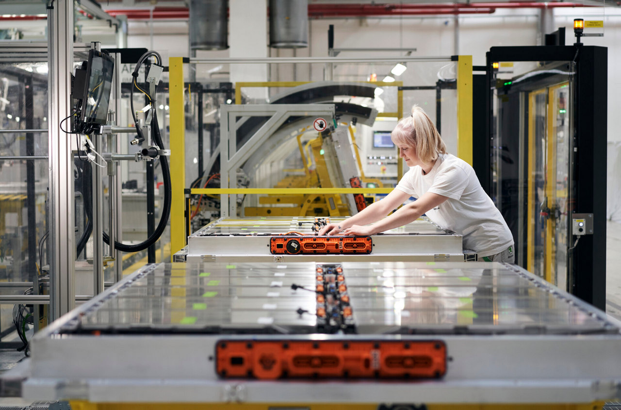 Svaka smena uključuje približno 90 zaposlenih koji rade u proizvodnom prostoru od oko 10.500 m². Uz to, 82 potpuno automatizovana robota obavljaju zadatke kao što je upravljanje posebno teškim komponentama. Na svakih 60 sekundi kompletira se po jedna baterija za model baziran na MEB-u. Kada siđe s proizvodne trake, svaka baterija teži približno 490 kilograma (82 kWh).