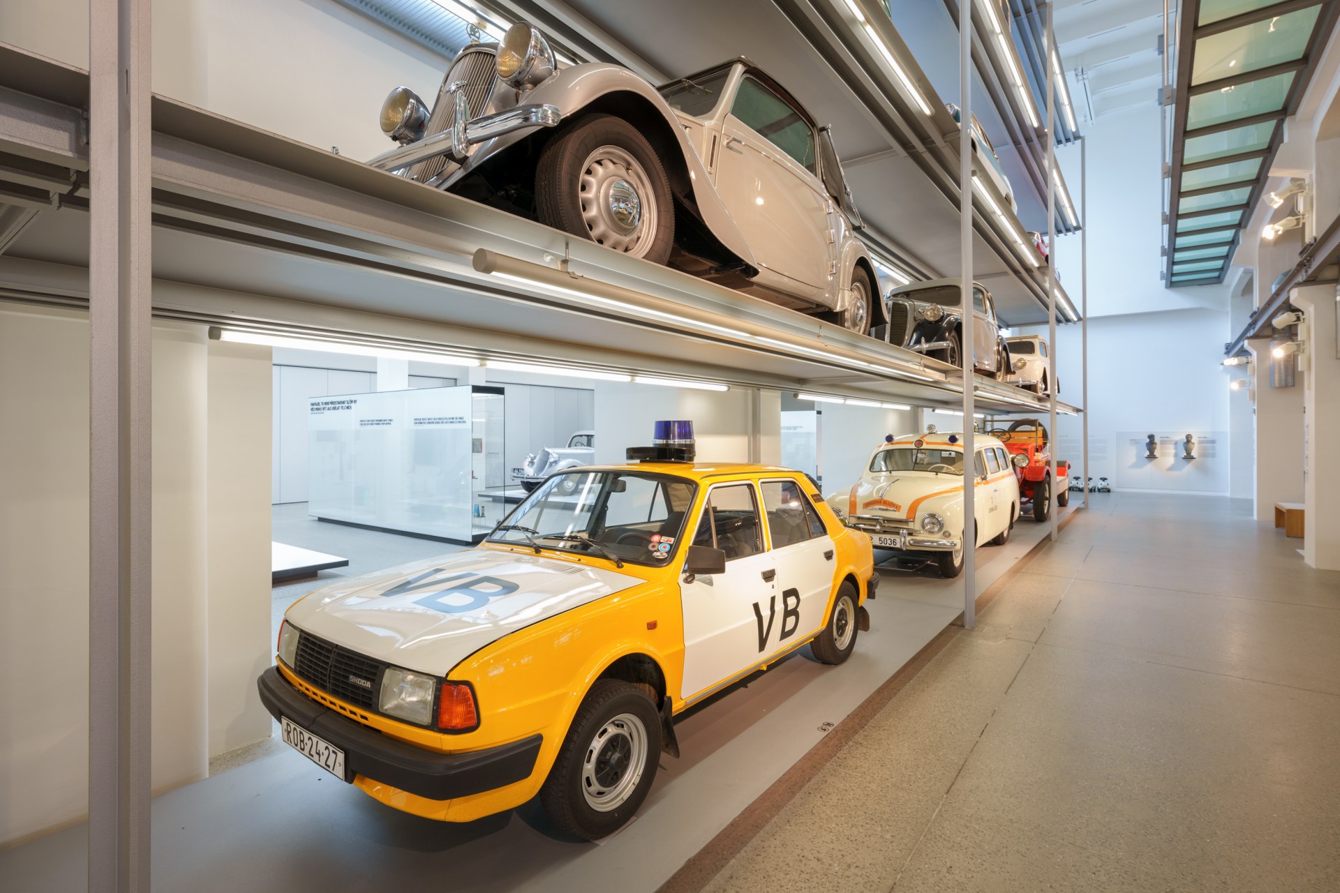 ŠKODA 120 je, u poređenju sa svojim prethodnikom ŠKODA 110, nudio veću zaštitu za putnike i moderniji dizajn. Imao je četvorocilindrični motor od 1174 cc/50 KS (36,7 kW) smešten pozadi. Ovaj dizajn nije bio koristan samo na klizavim nagibima, nego je takođe dokazao svoju vrednost na reli trkama. Originalna plava karoserija automobila „VB“ (čehoslovačka državna policija) sa belim prugama postupno je zamenjena 1975-1979 žuto-belim dizajnom sa crnim natpisom „VB“. Ova ŠKODA 120 sa kasnijim dizajnom je iz privatne kolekcije.