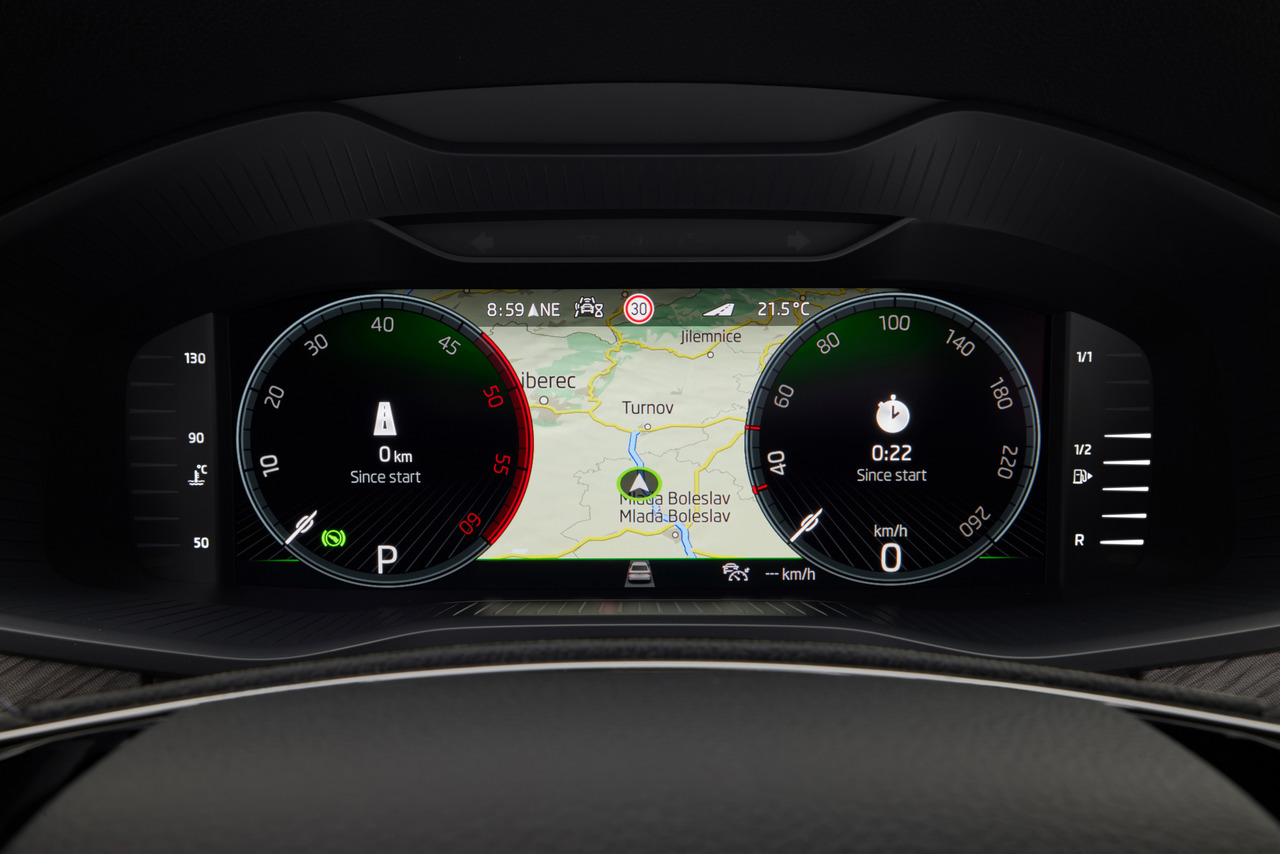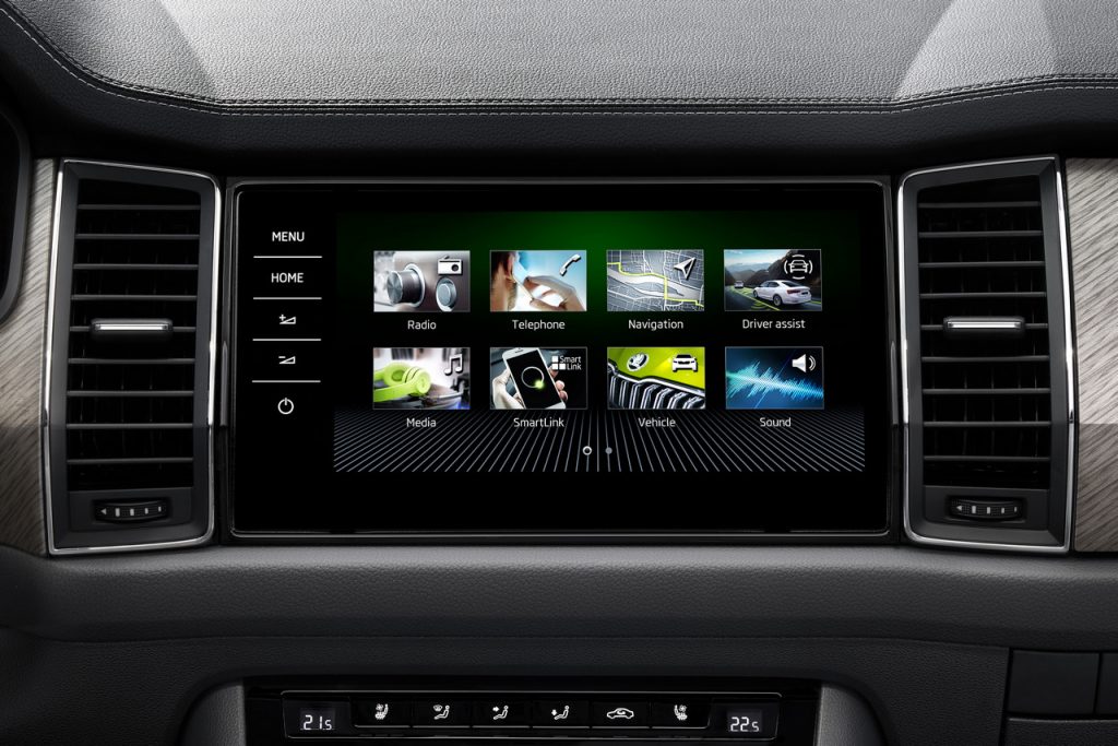 Cockpit sa 10,25-inčnim ekranom i četiri različita rasporeda dostupan je kao opcija za većinu modela, ali je standardan za KODIAQ RS. Vozači RS verzije i KODIAQ SPORTLINE imaju mogućnost izbora izgleda, između ostalih, Sport izgleda. Asortiman sistema pomoći sada takođe ima poboljšanu verziju Crew Protect Assist. Ova nova varijanta ima dodatne radarske senzore pozadi da odgovore na vozila koja predstavljaju rizik od sudara od pozadi.