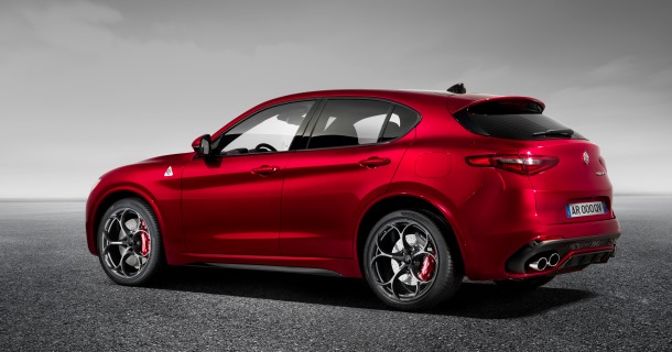 Prednji kraj modela Stelvio Quadrifoglio takođe daje snažan nagoveštaj snage i agresije, prvenstveno zahvaljujući specifičnim ispustima za vazduh za međuhladnjake i klasičnim otvorima oko rešetke štitastog oblika, u spoju sa snažnim spoljnim površinama. Zadnji kraj modela Stelvio takođe privlači pažnju zahvaljujući sportskoj pojavi koju mu daje njegov donji deo koji karakterišu četiri izduvna nastavka u “Kamm tail” stilu, koji vozilu daje jedinstven, prepoznatljiv karakter, istovremeno odajući počast istoriji brenda Alfa Romeo – obzirom da je ova izvedba dizajna primenjena na nekim od najprestižnijih performantnih modela i trkačkih vozila.