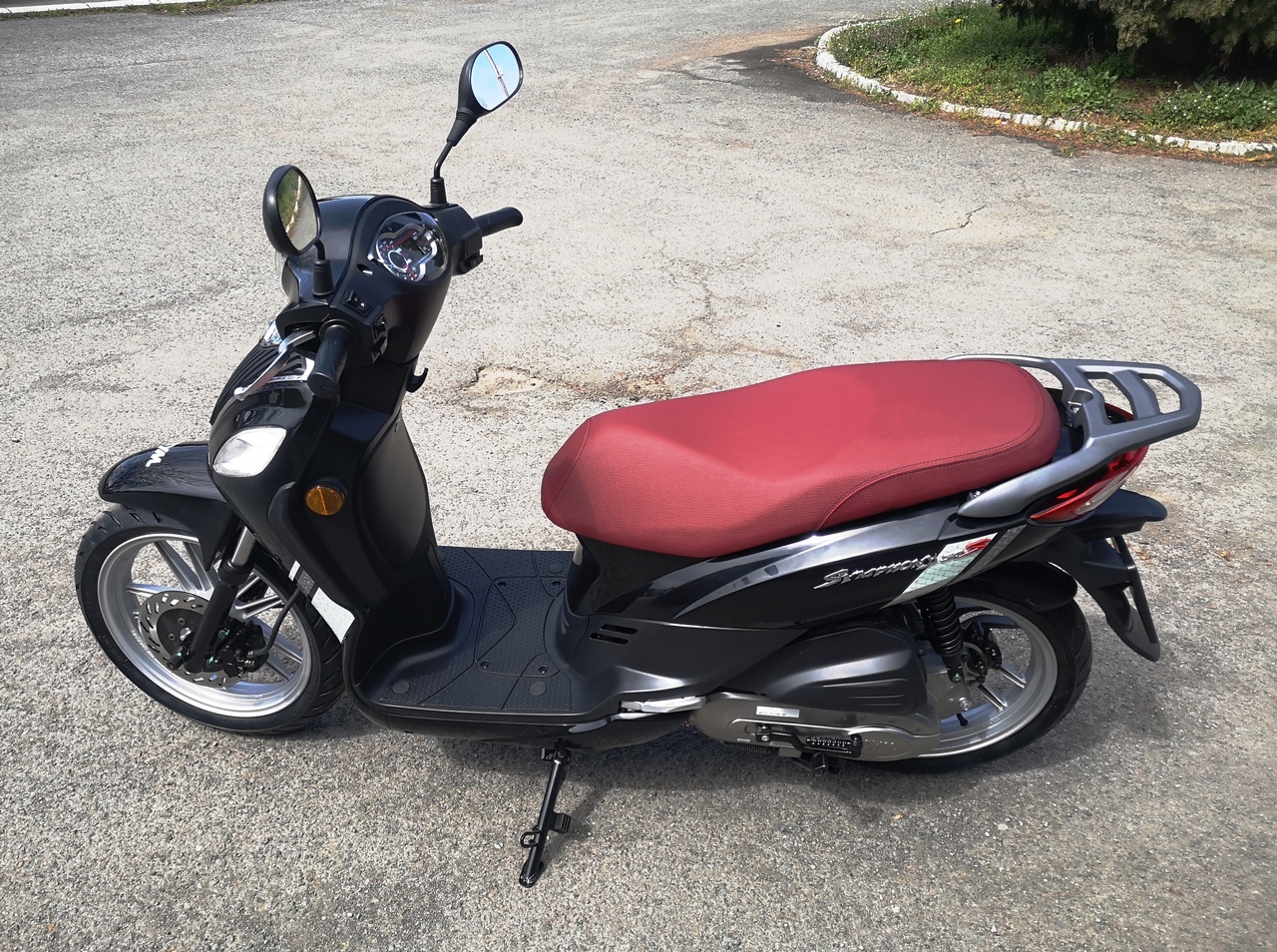 Kupac posebno može naručiti nosač za kutije, vizir ili neki drugi deo dodatne opreme kojim će svoj skuter učiniti jedinstvenim. Simphony S 50 pokreće jednocolindarski četvorotaktni motor među najsnažnijima u ovoj klasi – sa 2,6 kW/3,53 KS (isti je i maksimalni obrtni moment – 3,5 Nm), ima vazdušno hlađenje, CVT menjač i rezervoar od 5,4 litra. Posebno važno je da Sym Simphony S 50, mase 109 kg, ima veće točkove (od 16 inča) u odnosu na konkurentske modele, što, uz disk kočnice na oba točka, obećava bezbedniju vožnju i dobru upravljivost. Zbog većih dimenzija, predviđen je za prevoz dve osobe kojima neće manjkati udobnosti.