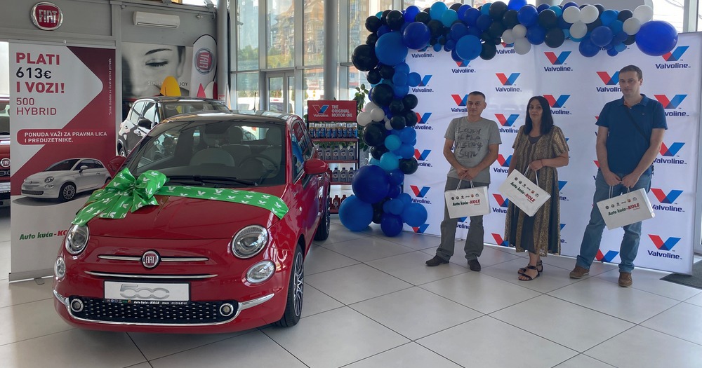 Iz tog razloga su ove godine pokrenuli inicijativu kojom su želeli da nagrade svoje postojeće, ali i buduće verne kupce. Nagradna igra “Uz Valvoline, crveni fićko u 3 poteza” odličan je primer kako su građani zahvaljujući sjajnoj i razgranatoj mreži Valvoline servisa i prodajnih mesta, kupovinom proizvoda mogli da osvoje i neku od vrednih nagrada. U saradnji sa Auto kućom Kole – Zemun, ovlašćenim dilerom kompanije FCA Srbija za vozila brendova Fiat, Alfa Romeo, Fiat Professional, Jeep i Abarth, odlučeno je da glavna nagrada bude FIAT 500 Hybrid Dolcevita.