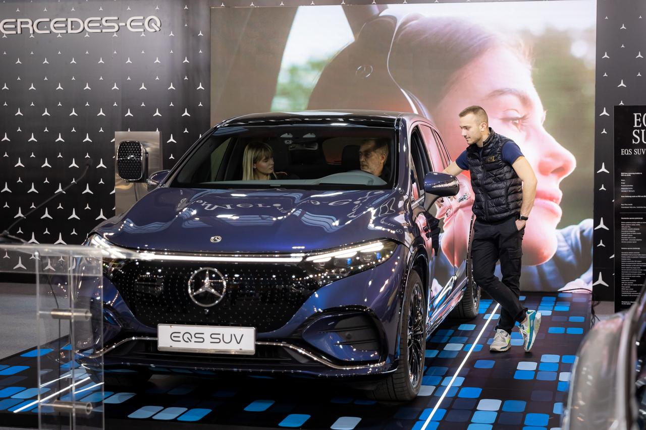 Zvezda 55. Međunarodnog salona automobila u Beogradu je električna, luksuzna limuzina – EQS SUV. Ovaj model nudi obilje prostora i udobnosti za do sedam putnika u svojoj avangardnoj, luksuznoj unutrašnjosti. Zahvaljujući snažnim električnim motorima, 4MATIC pogonu na sva četiri točka i inteligentnom režimu vožnje OFFROAD, EQS SUV je takođe sposoban da se sa lakoćom nosi sa svakom vrstom terena. Prema WLTP procesu, EQS SUV nudi domet do 660 km.